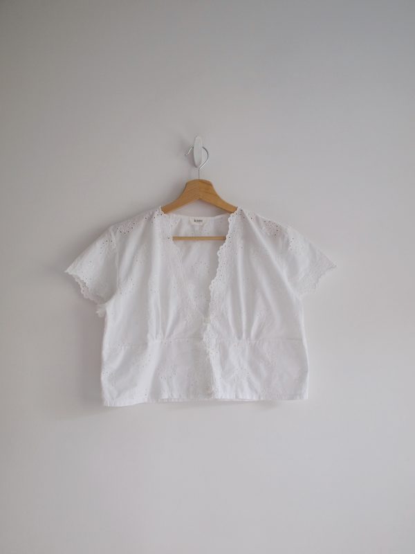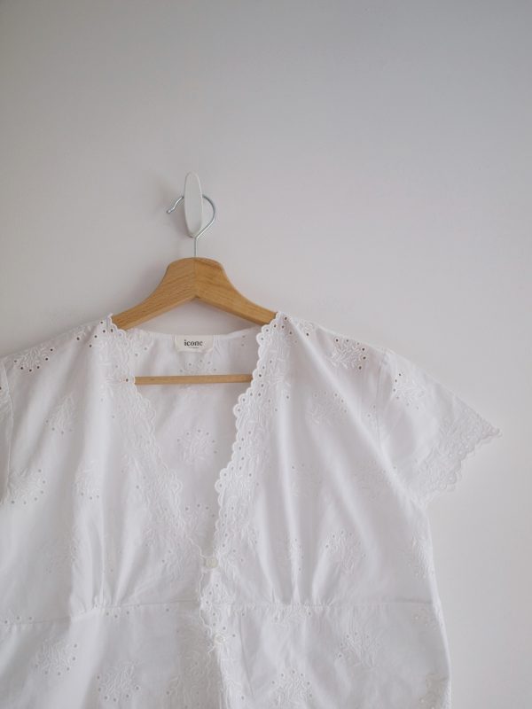 Top w rustykalnym stylu ekskluzywnej marki ICONE, cena katalogowa 62 eur. Wykonany z bawełnianej popeliny, w całości zdobiony haftem angielskim.