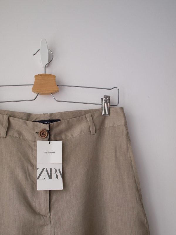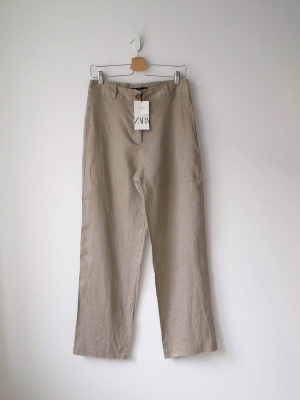 Nowe spodnie Zara z metką. Wykonane w 100% z lnu, z wysokim stanem i prostymi nogawkami. Klasyczny fason.