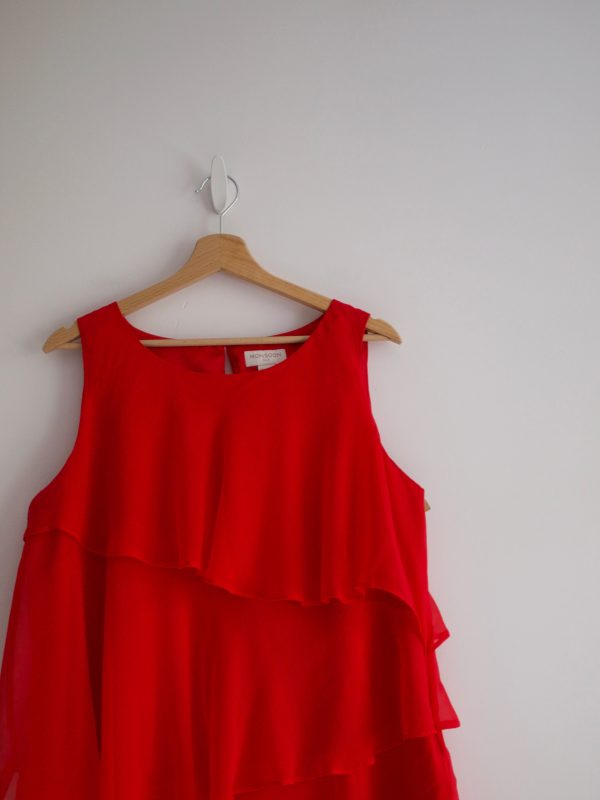 Jedwabna sukienka z falbanami. Z podszewką, zapinana na boczny zamek