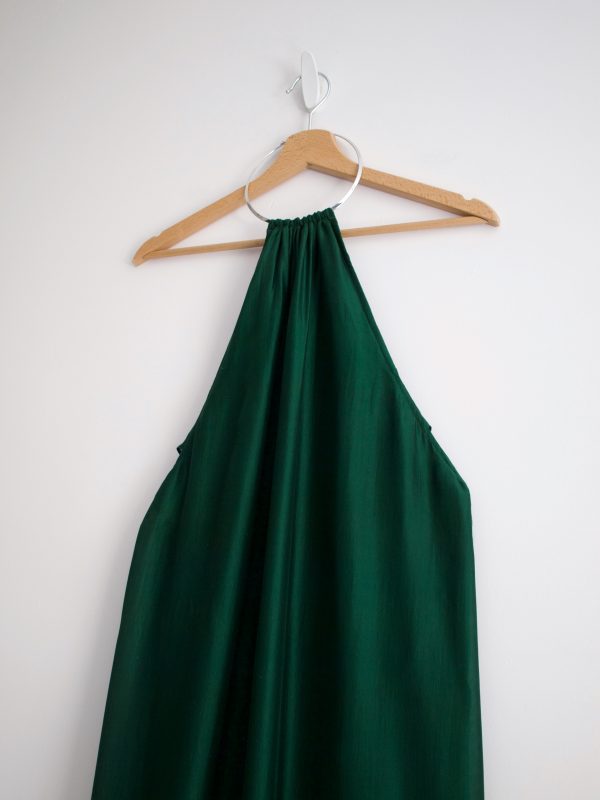 470,00 złSukienka luksusowej duńskiej marki Designers Remix, w 100% wykonana z cienkiego jedwabnego szyfonu w pięknym szmaragdowym kolorze. Dekolt typu halter, z tyłu duże wycięcie. W pasie elastyczna gumka dla lepszego dopasowania. Sukienka posiada krótką podszewkę.
