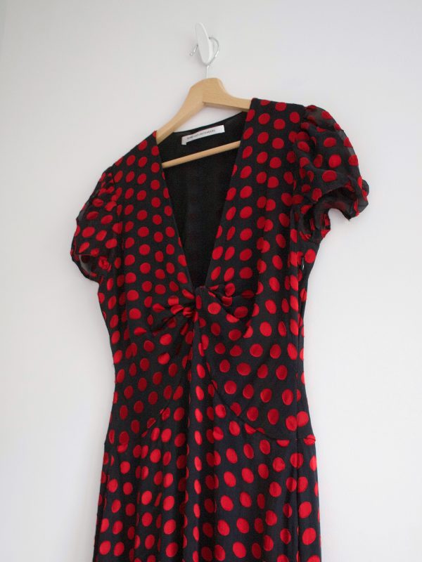 650,00 złUnikatowa sukienka od belgijskiej projektantki Diane von Furstenberg – model Adrienne Dress, o katalogowej cenie $998. Sukienka została wykonany z cienkiej, jedwabnej tkaniny i posiada podszewkę. Z boku jest zapinana na ukryty zamek. Model Adrienne Dress zyskał popularność dzięki swojej klasycznej formie i był noszony przez znane osobistości, w tym modelkę Karlie Kloss.