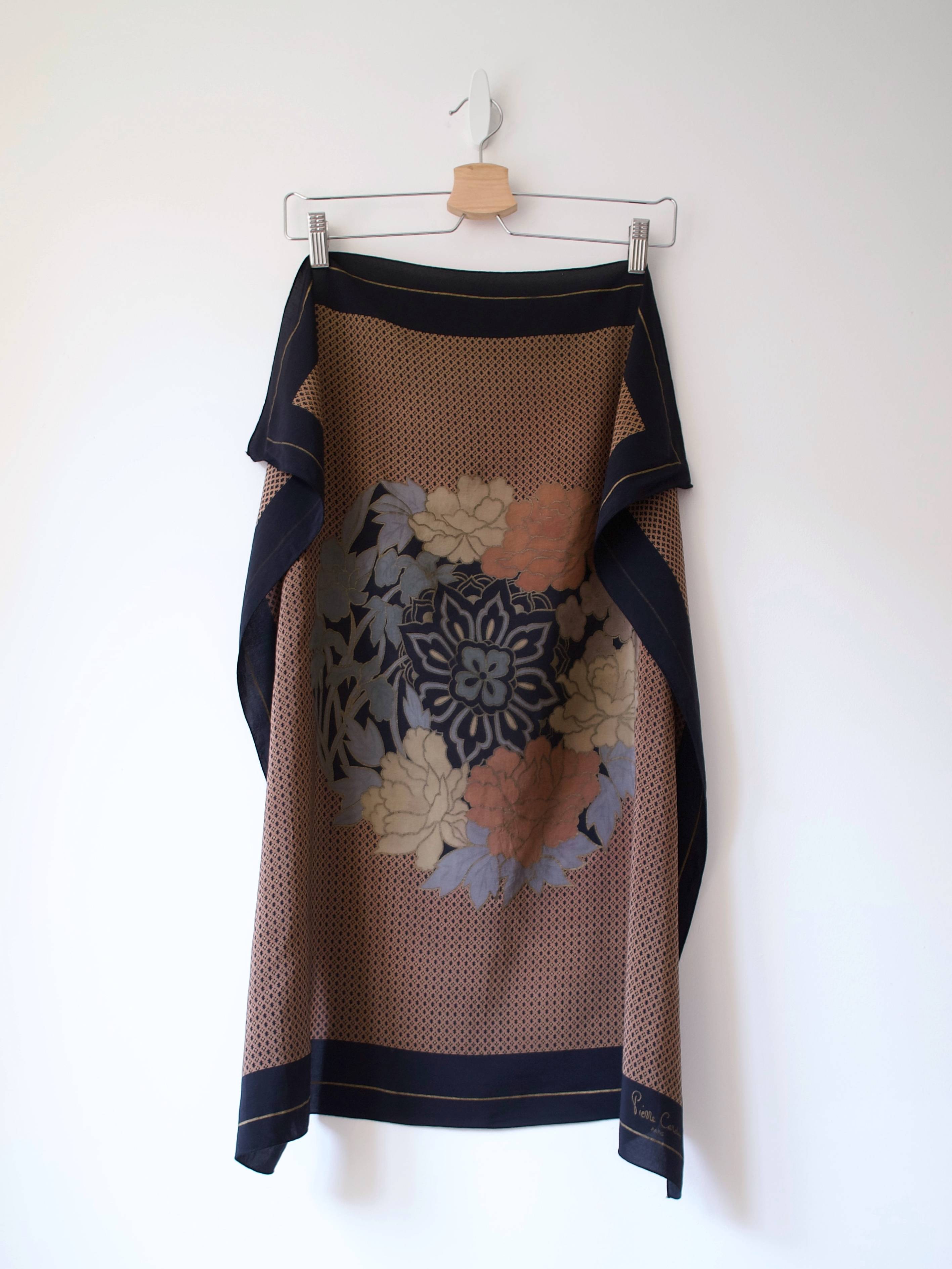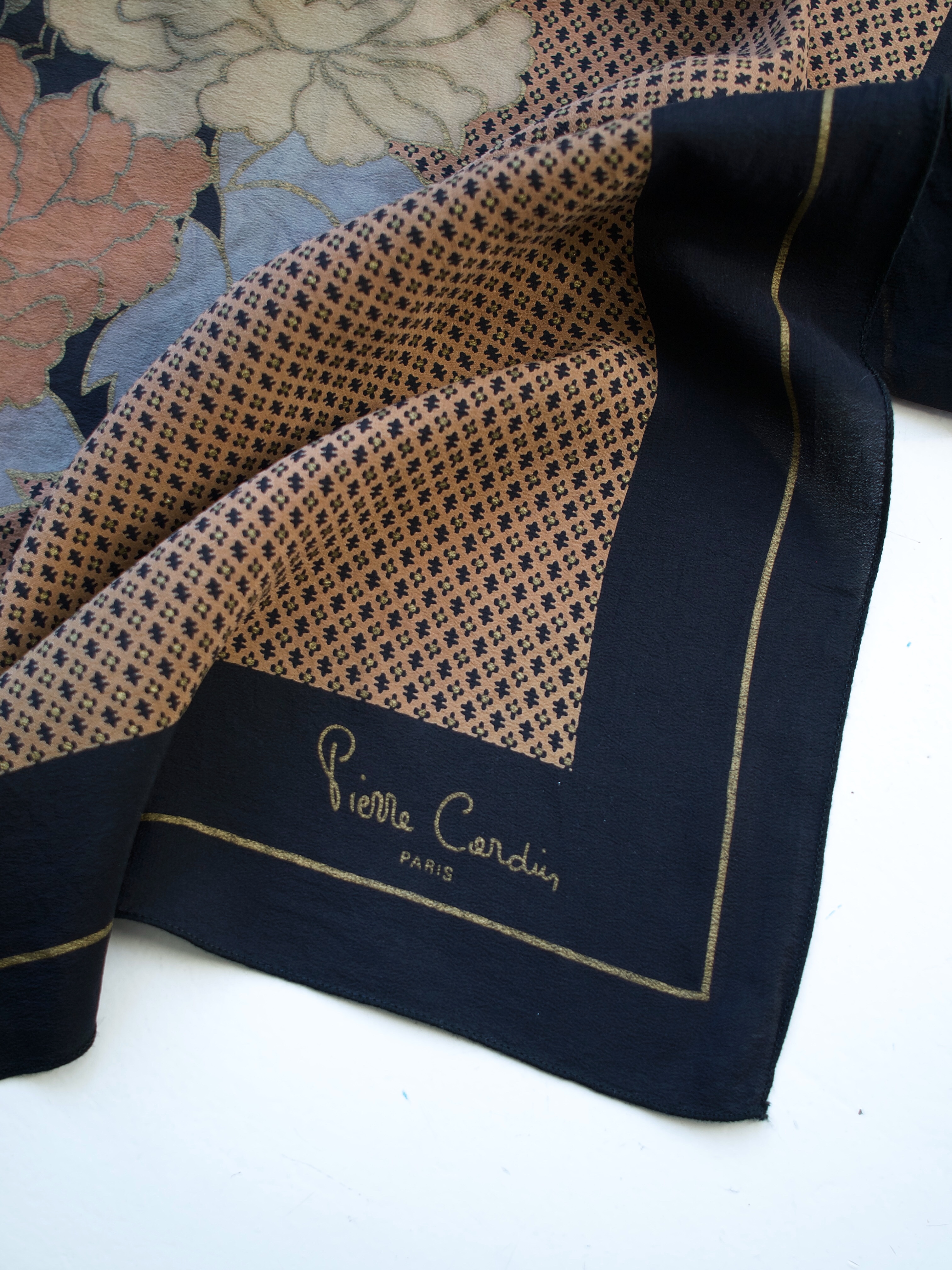 Jedwabna chusta domu mody Pierre Cardin Paris w pięknych jesiennych kolorach. Vintage z lat 80, pomimo wieku w bardzo dobrym stanie. Wymiary:79*72 cm