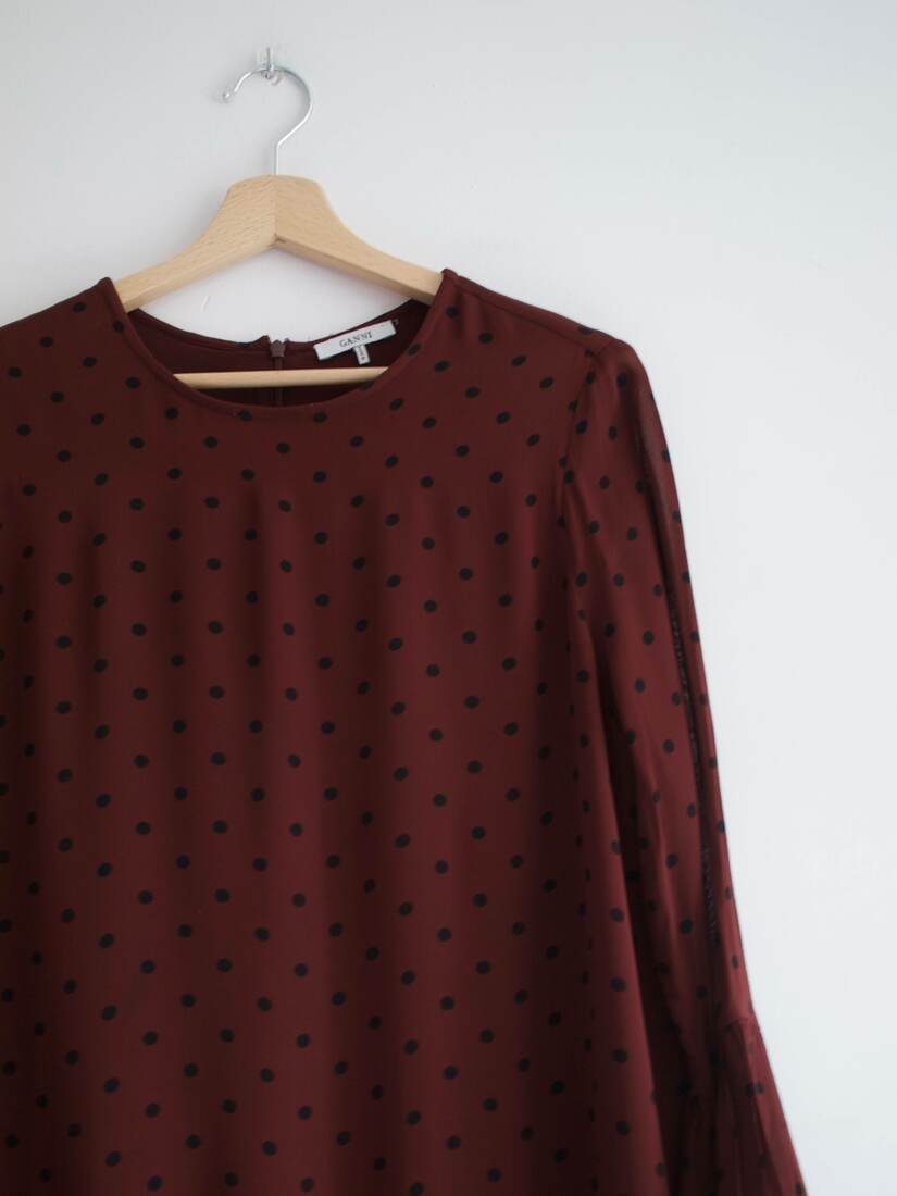Rozmiar z metki 12 Skład 100% jedwab Stan bez wad Szerokość w klatce 47 cm Długość całkowita 64 cm