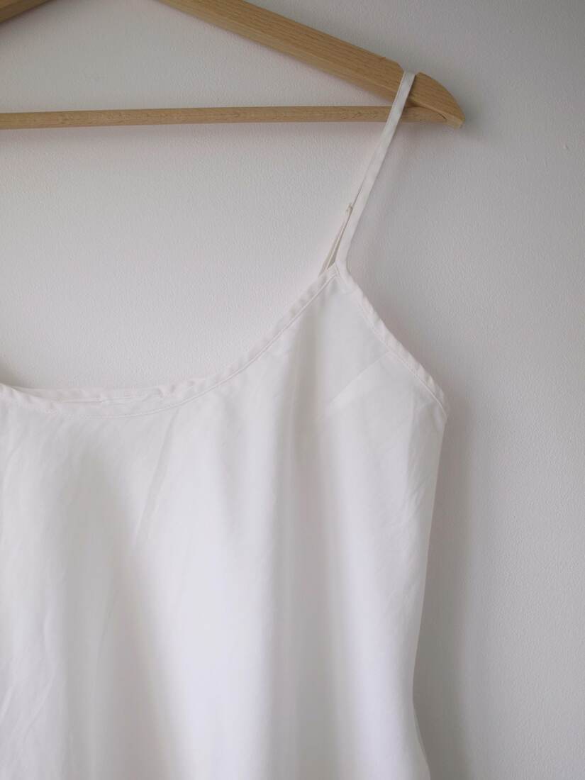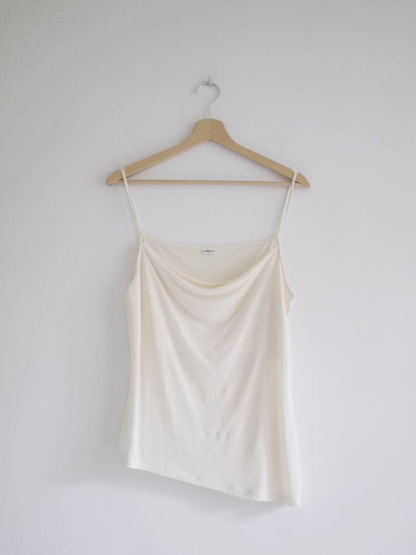 Jedwabny top z pięknym lejącym dekoltem. Dodatkowa warstwa w dekolcie, asymetryczny dół.