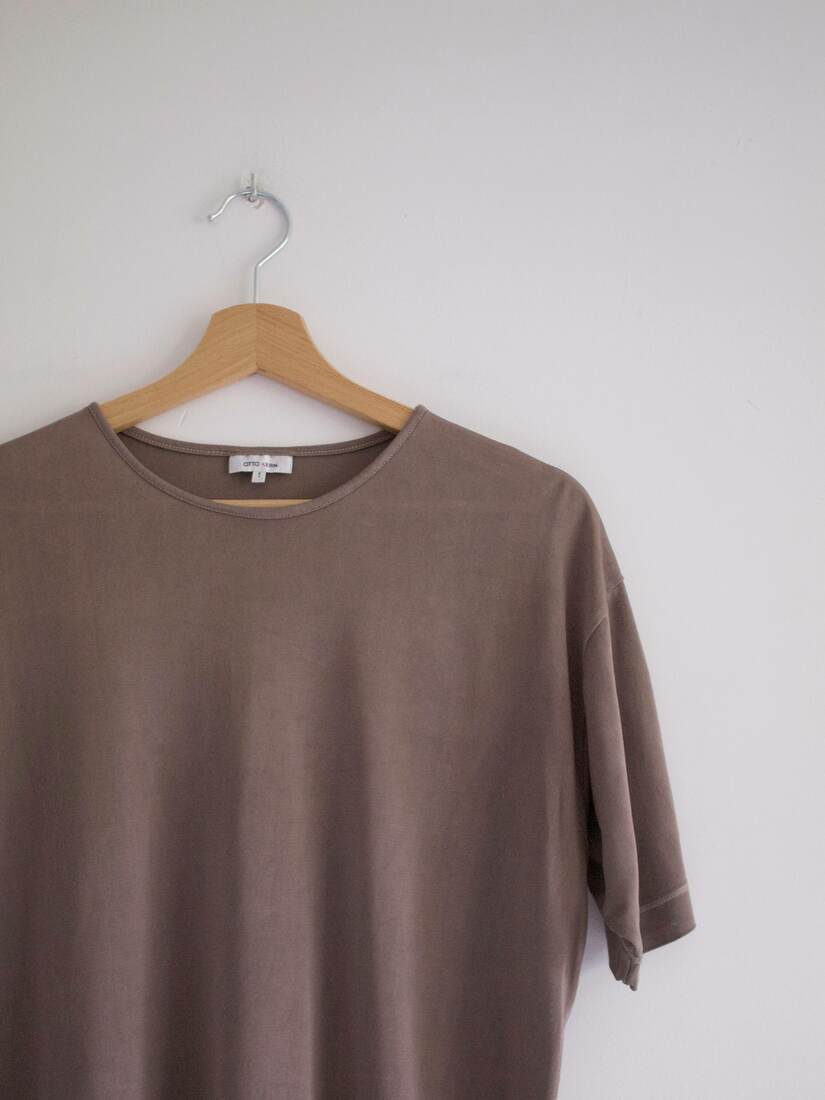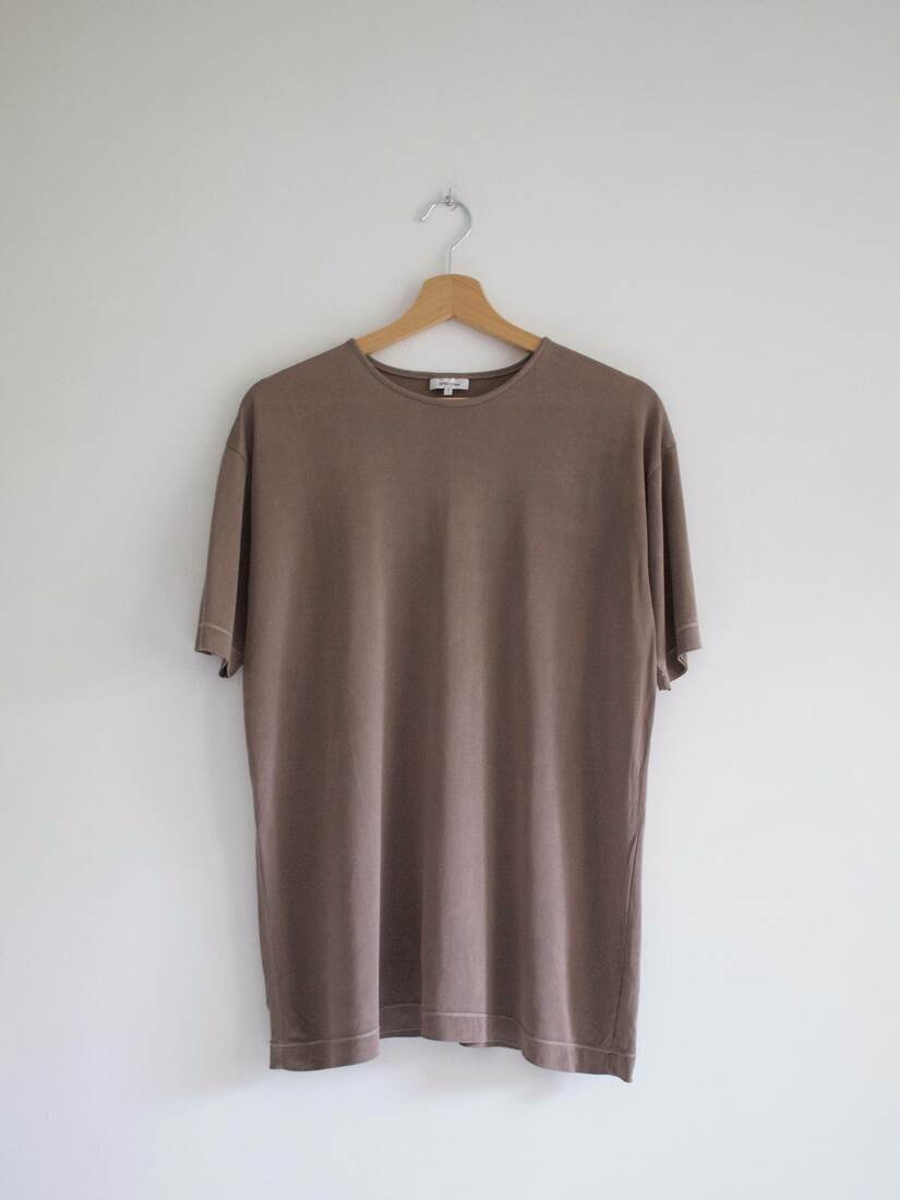 Jedwabny T-shirt w kolorze kakaowym.