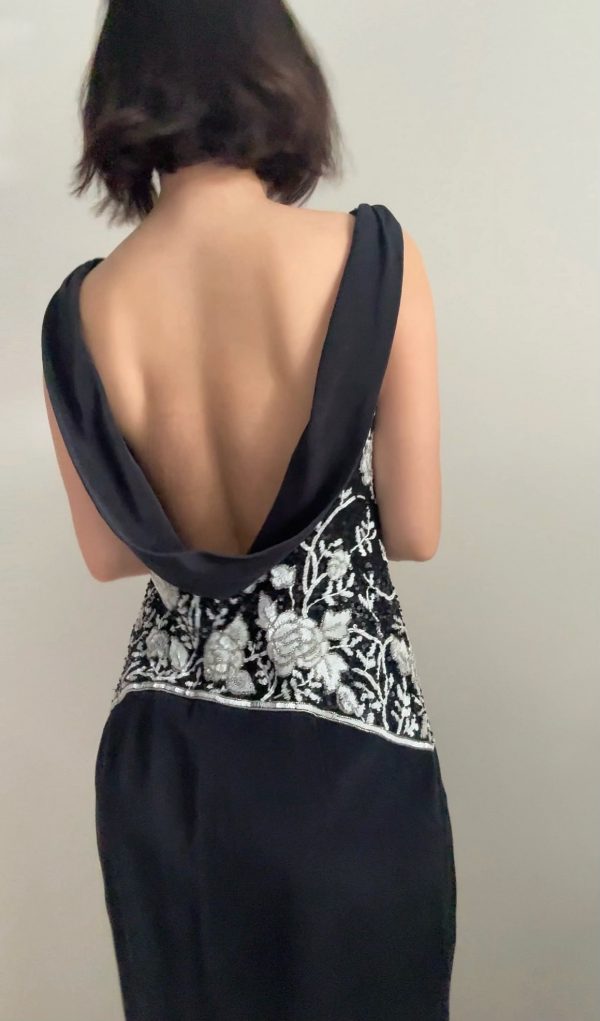 650,00 złUnikatowa sukienka domu mody Escada, podobny model jest dostępny na platformie sprzedażowej Vestiaire za ponad 1000 USD. Wykonana z ciężkiego, matowego jedwabiu dobrze trzymającego formę. Z tyłu większy dekolt. Sukienka jest zapinana na boczny zamek, z podszewką. Polecam raczej dla osoby wysokiej.