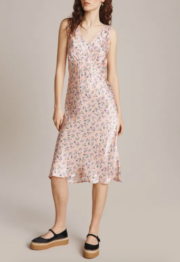 160,00 złSukienka marki Ghost London, uszyta z satyny w klasycznym kroju slip. W różowej tonacji, pokryta subtelnym wzorem kwiatów. Dekolt w kształcie litery V i marszczenie pod biustem podkreślają kobiecą sylwetkę