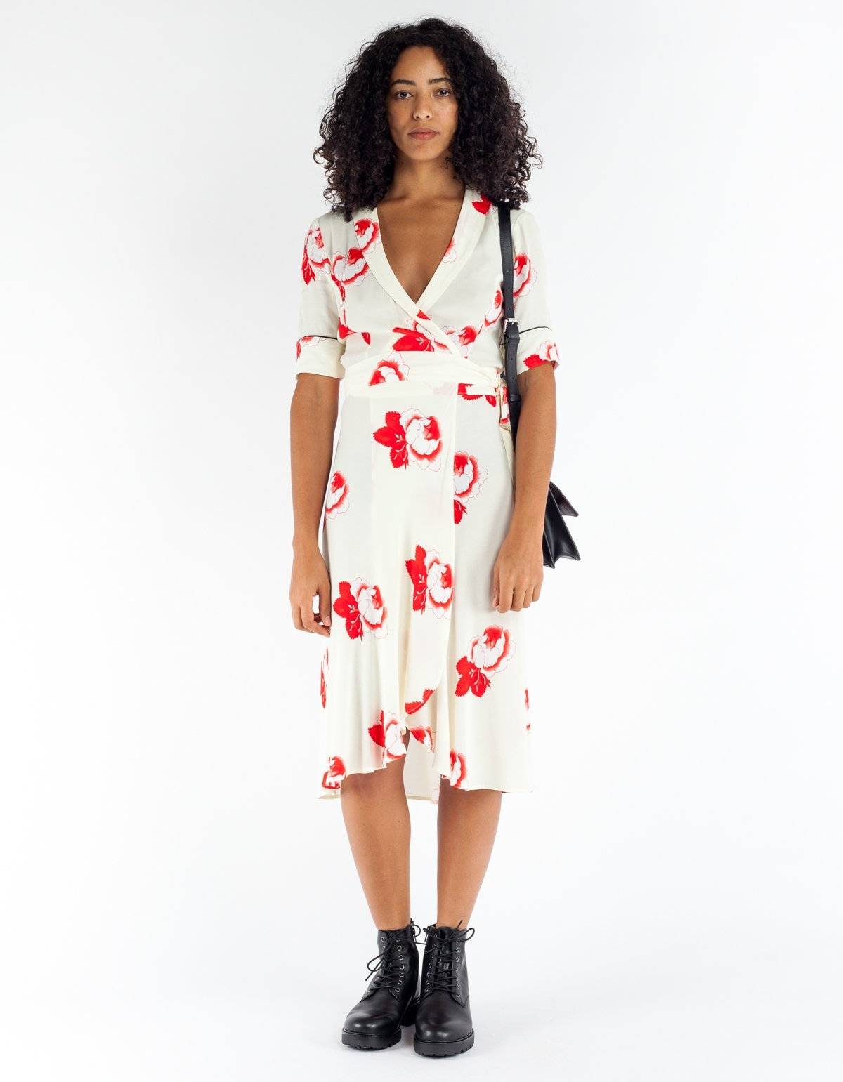 Sukienka skandynawskiej marki Ganni, model Harley Crepe Dress in Vanilla Ice, cena katalogowa 167 euro. Rozmiar z metki 36 Skład 100% wiskoza Stan bardzo dobry