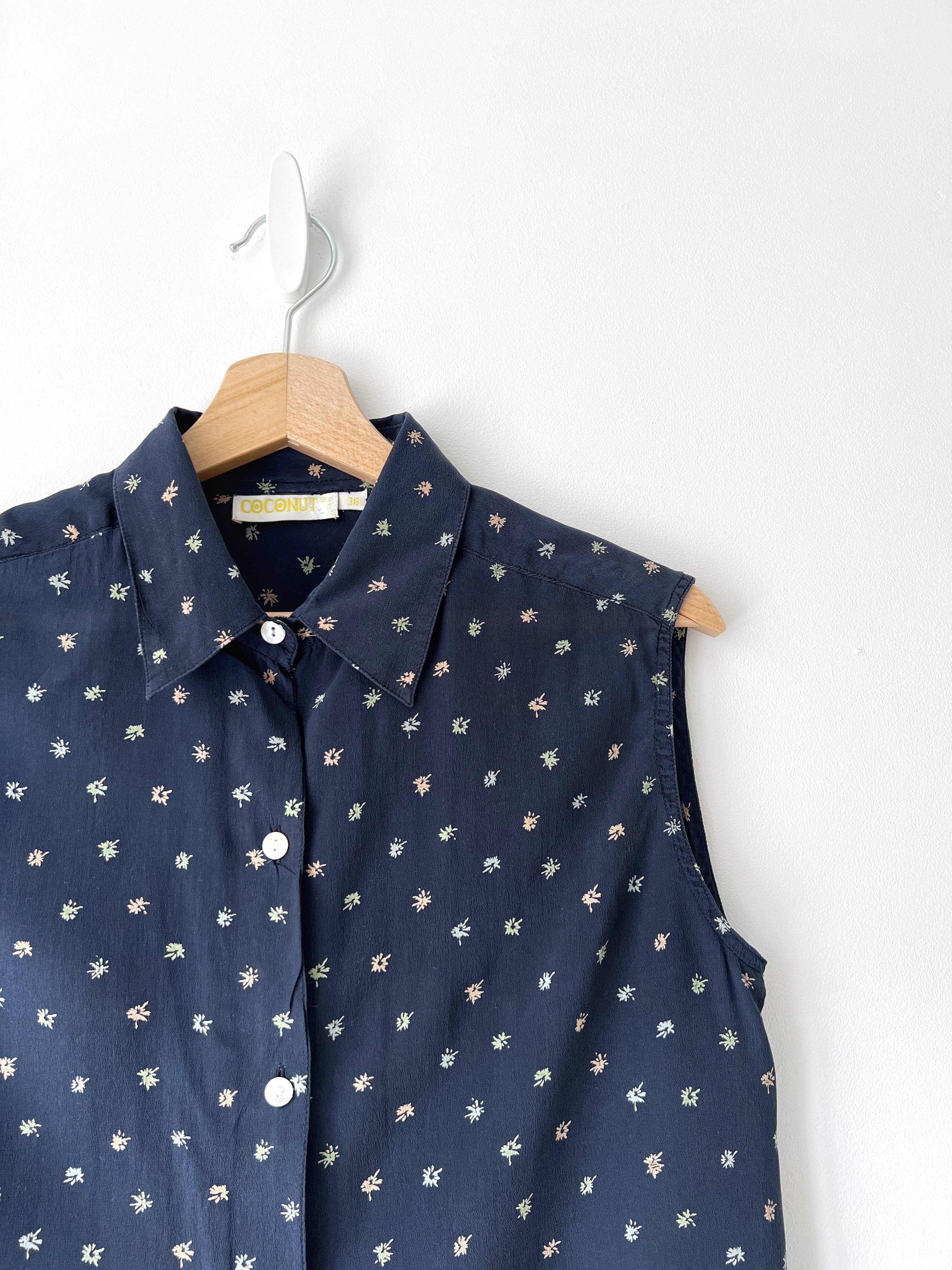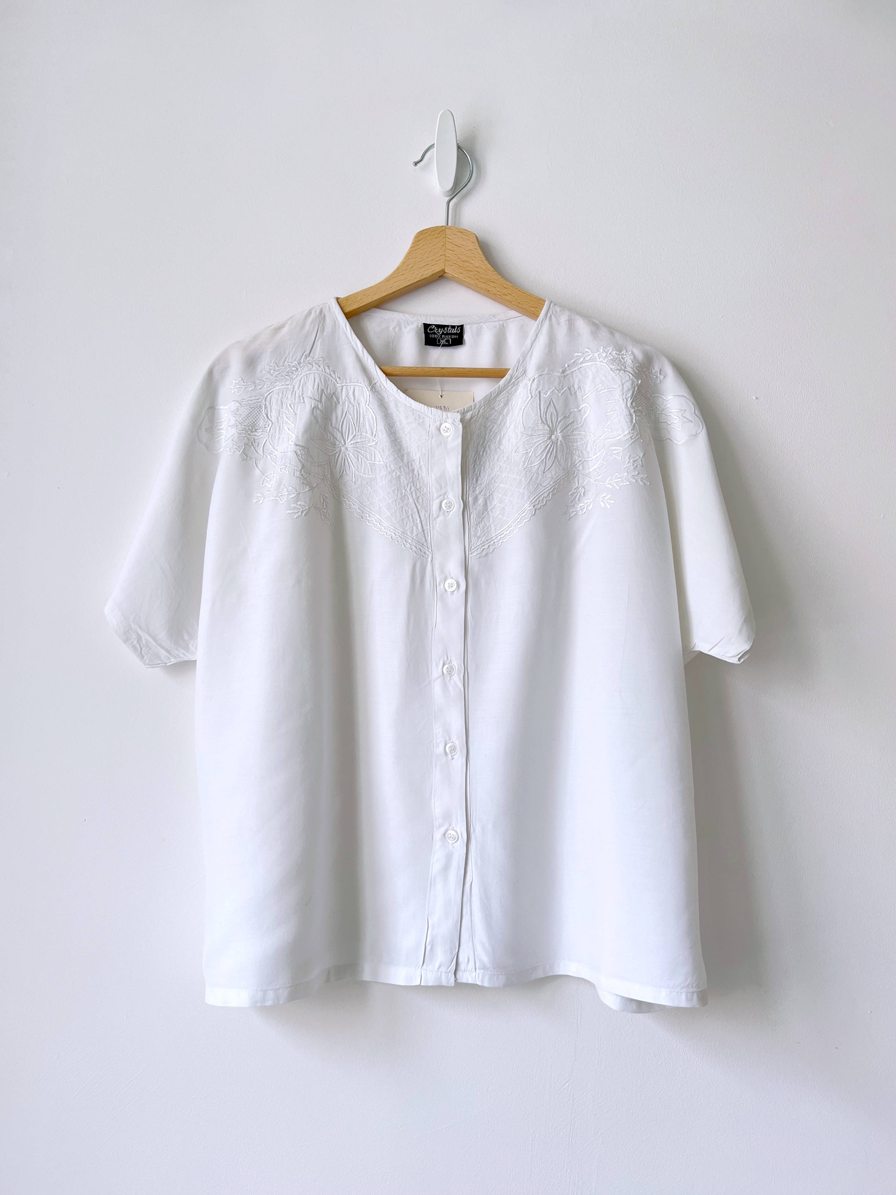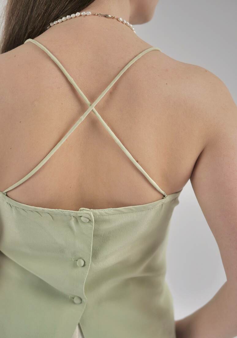 Jedwabny top vintage. Wykonany z dwóch warstw jedwabiu, z tyłu zapinany na guziki powlekane jedwabną tkaniną. Polecam na XS-S, idealny stan.