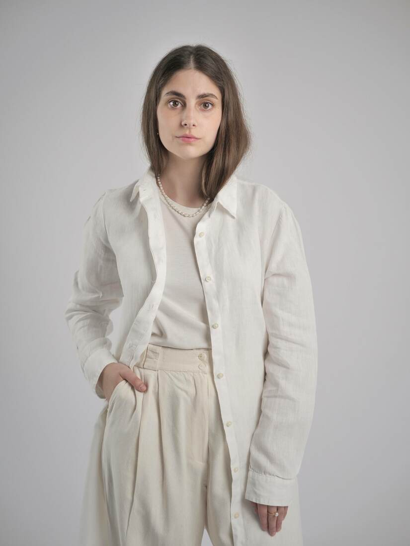 Modelka ma 164 cm wzrostu i nosi rozmiar S.Szerokość w ramionach 38 cm