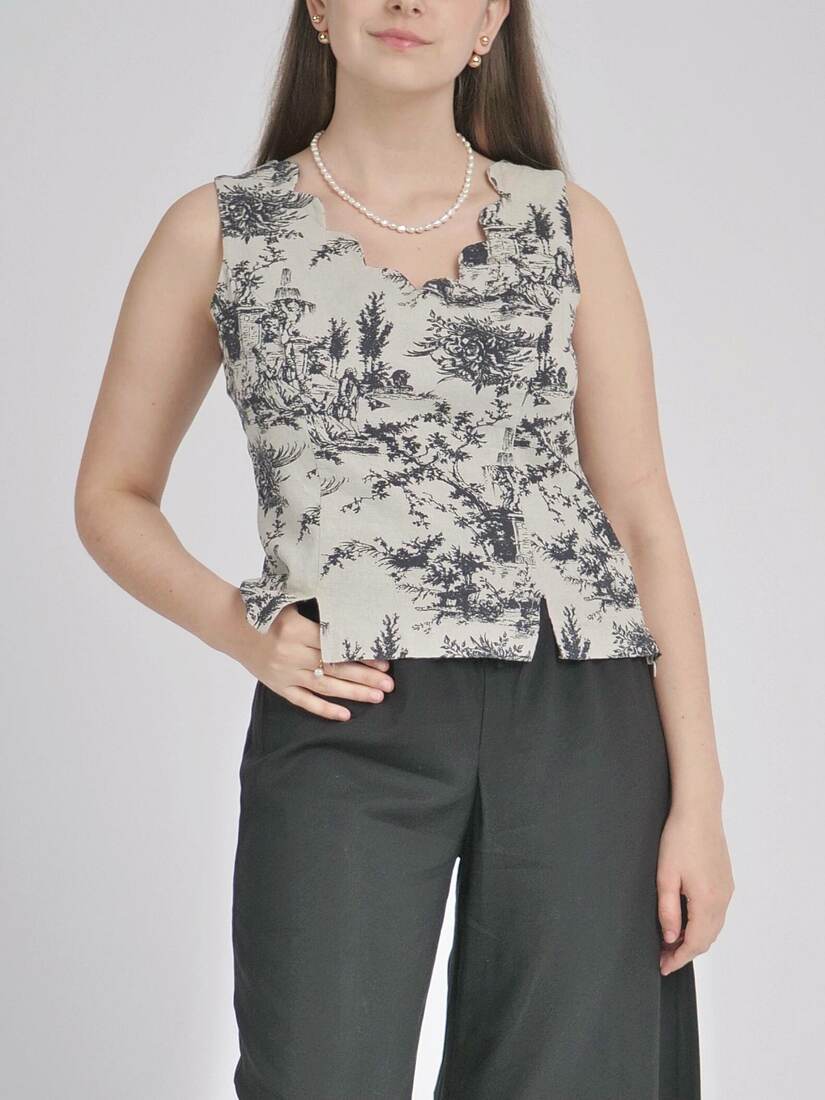 Top jest wystawiony na sprzedaż na platformie Vestiaire Collective, gdzie był sprawdzany na autentyczność.Szerokość w klatce 40 cm