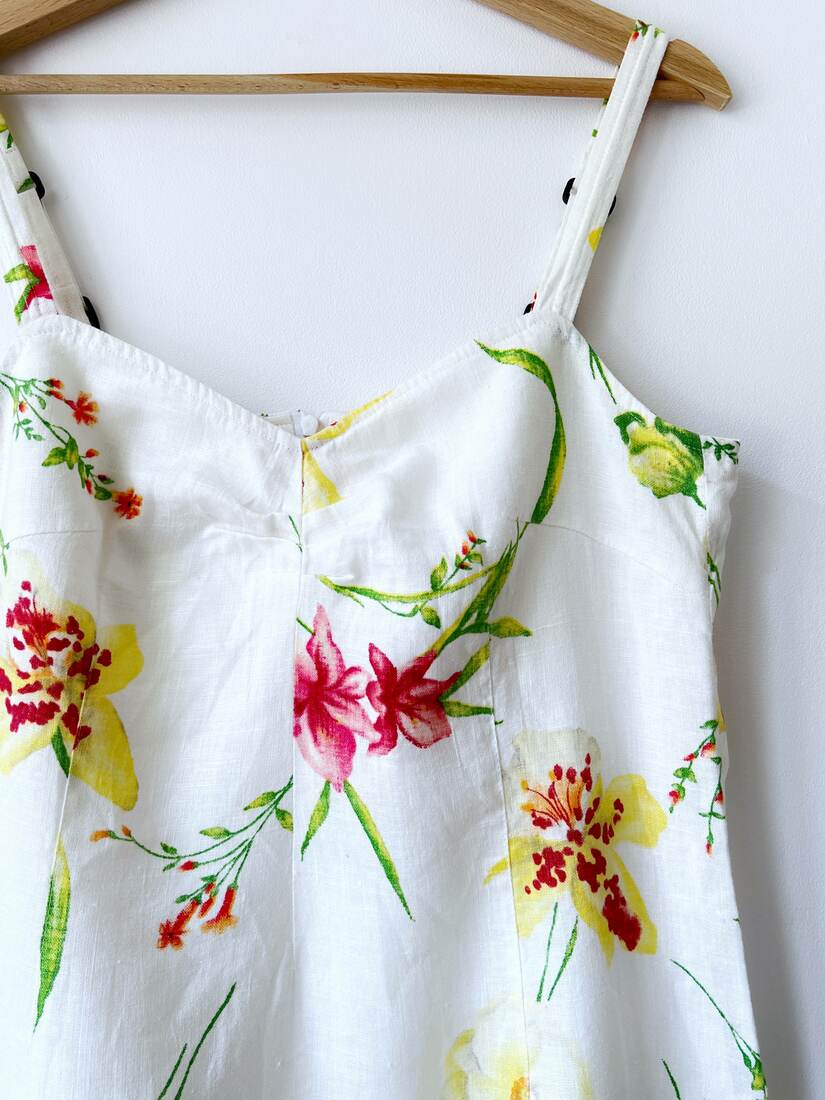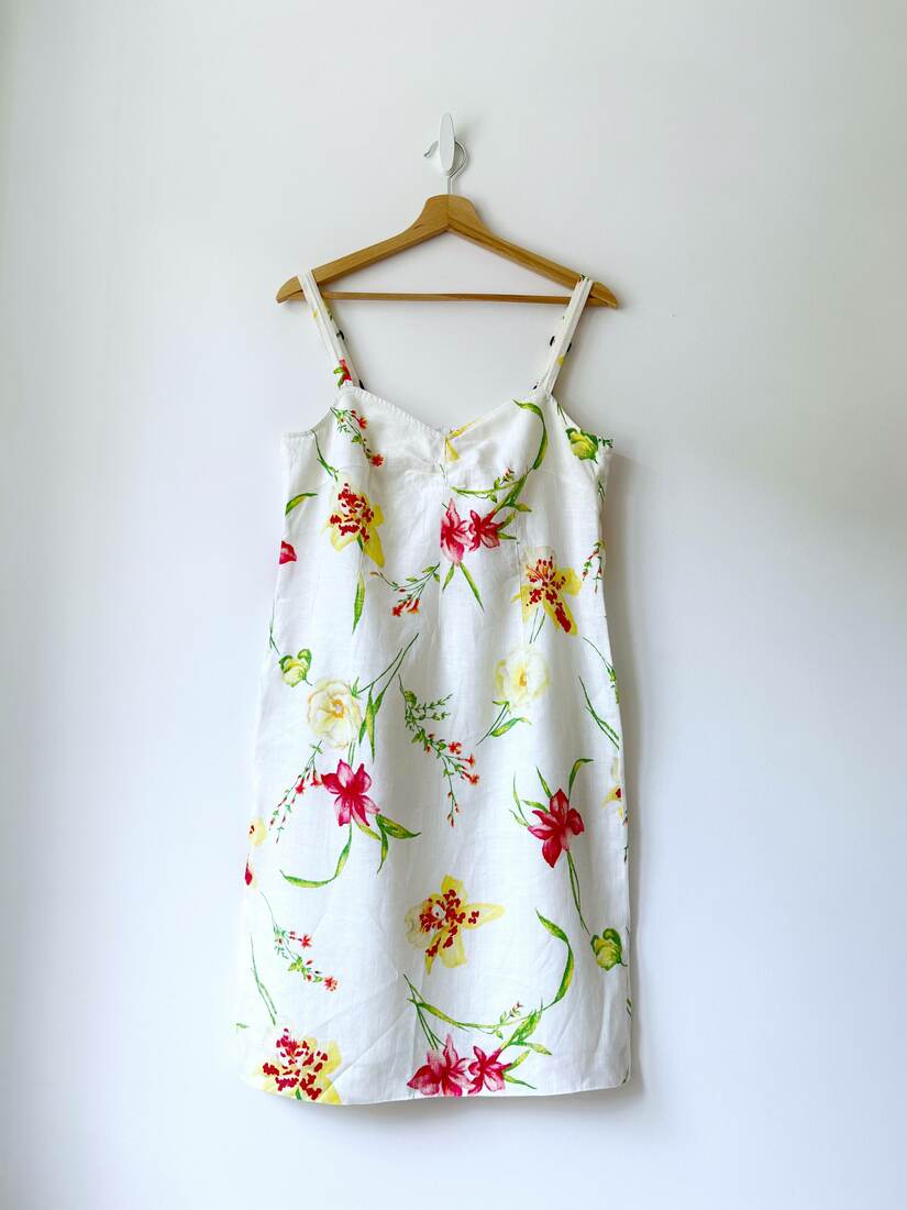150,00 złJedwabna sukienka domu mody Versace. Materiał wierzchni 100% jedwab, podszewka poliamid. Rozmiar z metki 28/42, polecam na S-M. Sukienka pod pachami ma delikatne przebarwienia, które nie udało się usunąć w pralni chemicznej. Nie są widoczne w noszeniu. Poza tym bez wad.