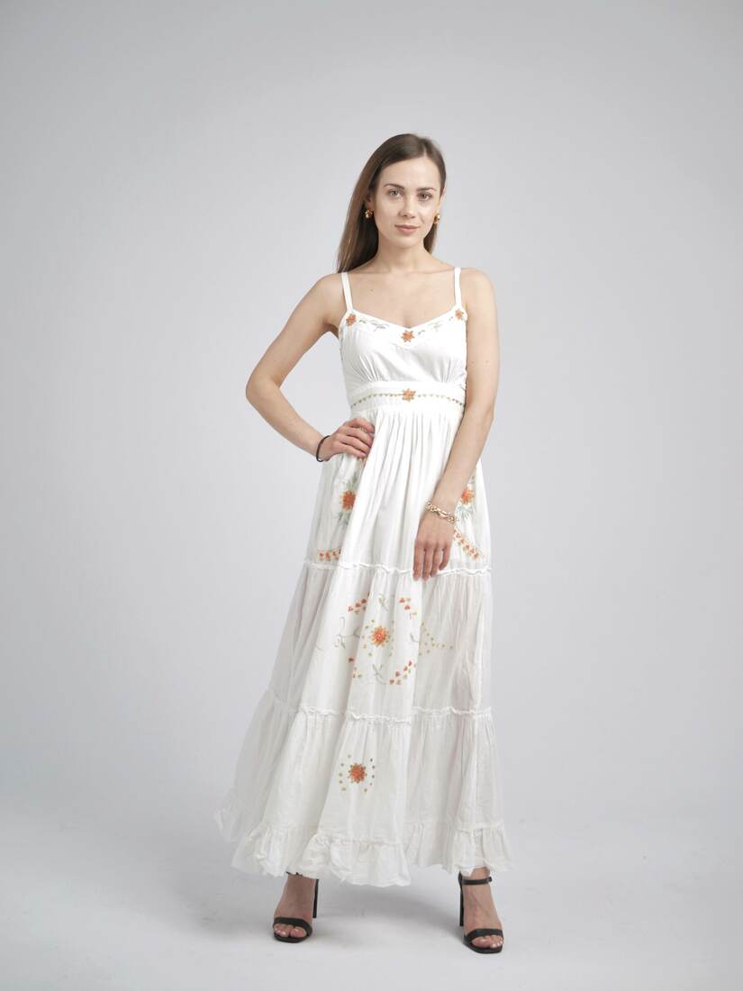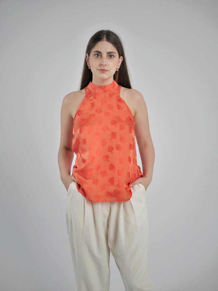 Modelka ma 165 cm wzrostu i nosi rozmiar XS-S.Szerokość w klatce 38 cm
