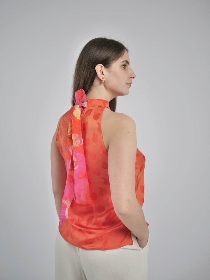Skład: 70% wiskoza, 30% jedwab, wiązanie z tyły 100% jedwab