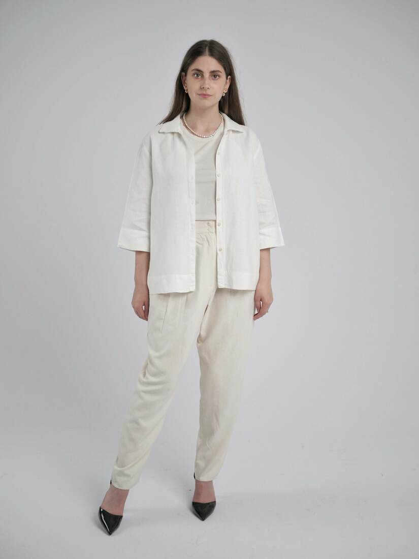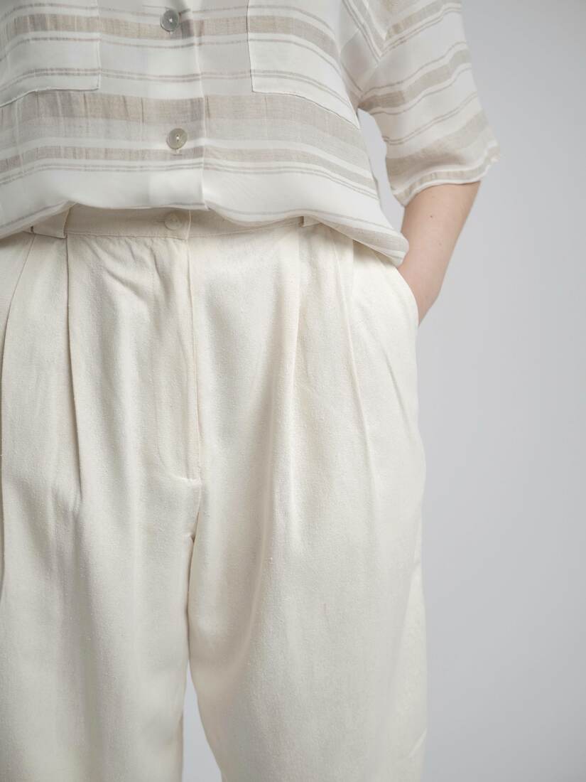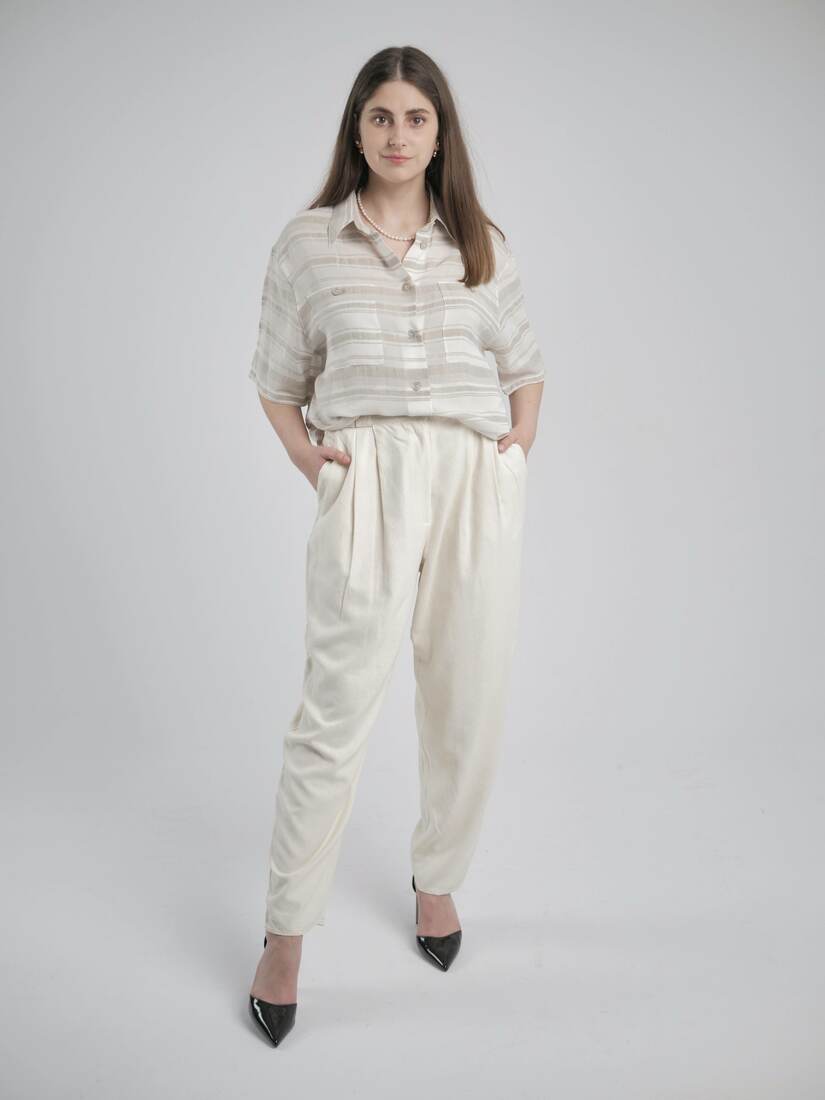 150,00 złSpodnie wykonany z surowego jedwabiu „burety”. Jedwab surowy jest bardzo lekki i przewiewny, o charakternej „lnianej” strukturze. Spodnie nie posiadają żadnych metek, prawdopodobnie szyte na zamówienie. Polecam na r.M, lub na S jako luźne. Bez wad.