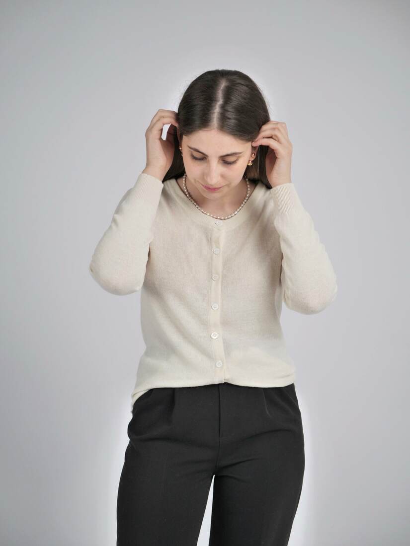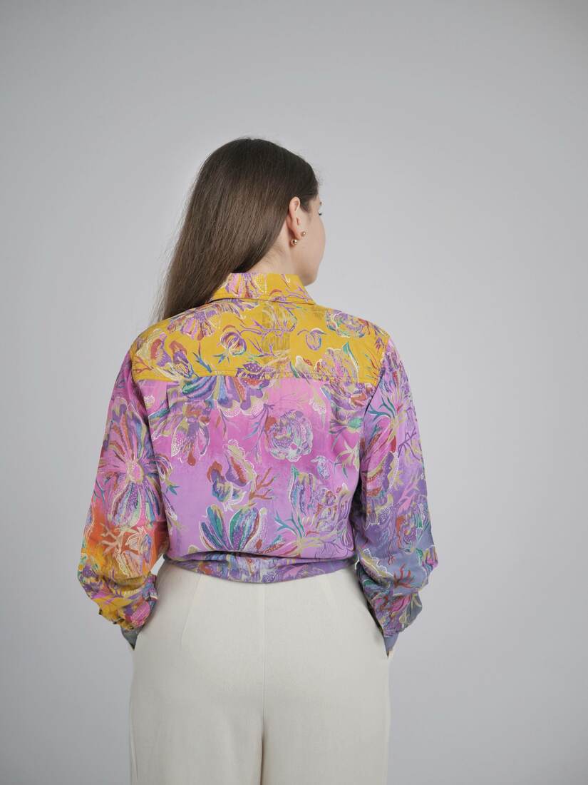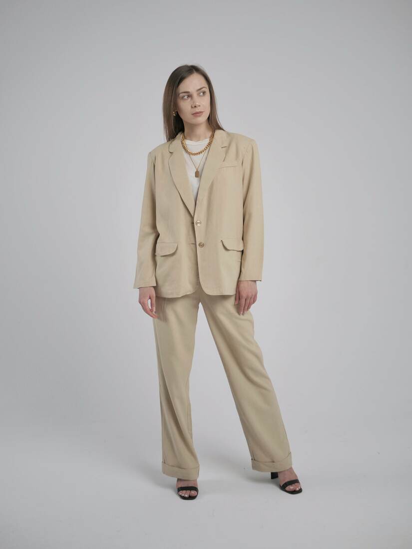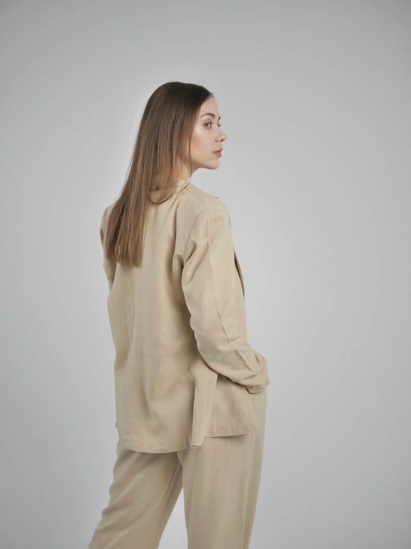 Modelka ma 165 cm wzrostu i nosi rozmiar XS-S.Wymiary marynarki: