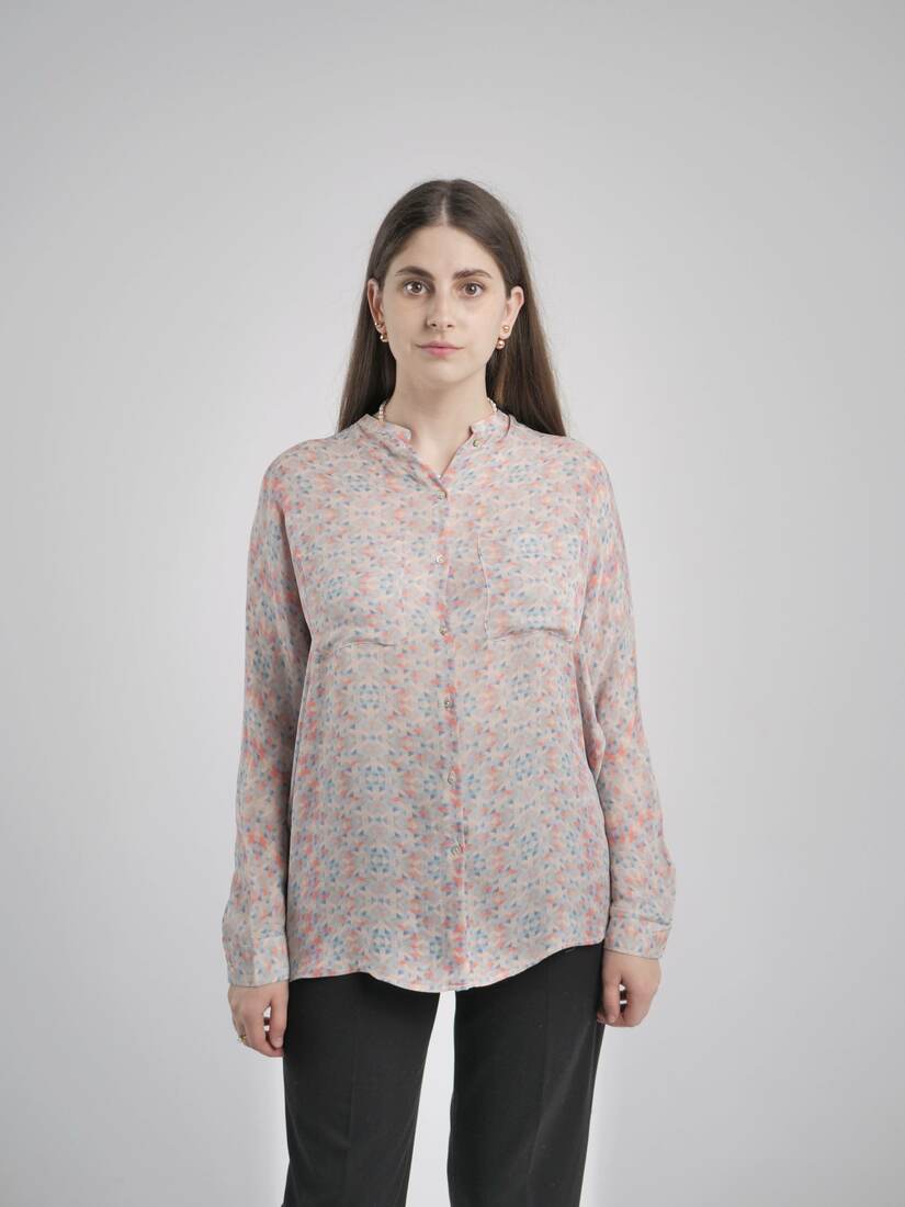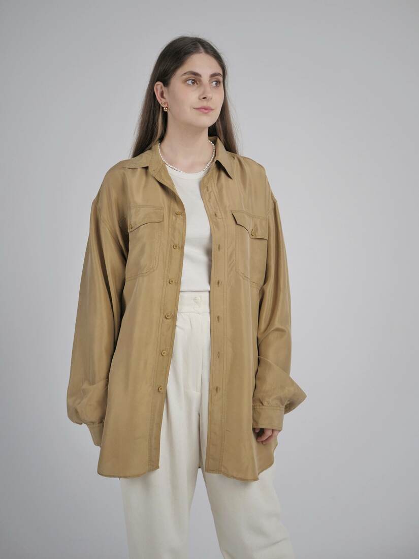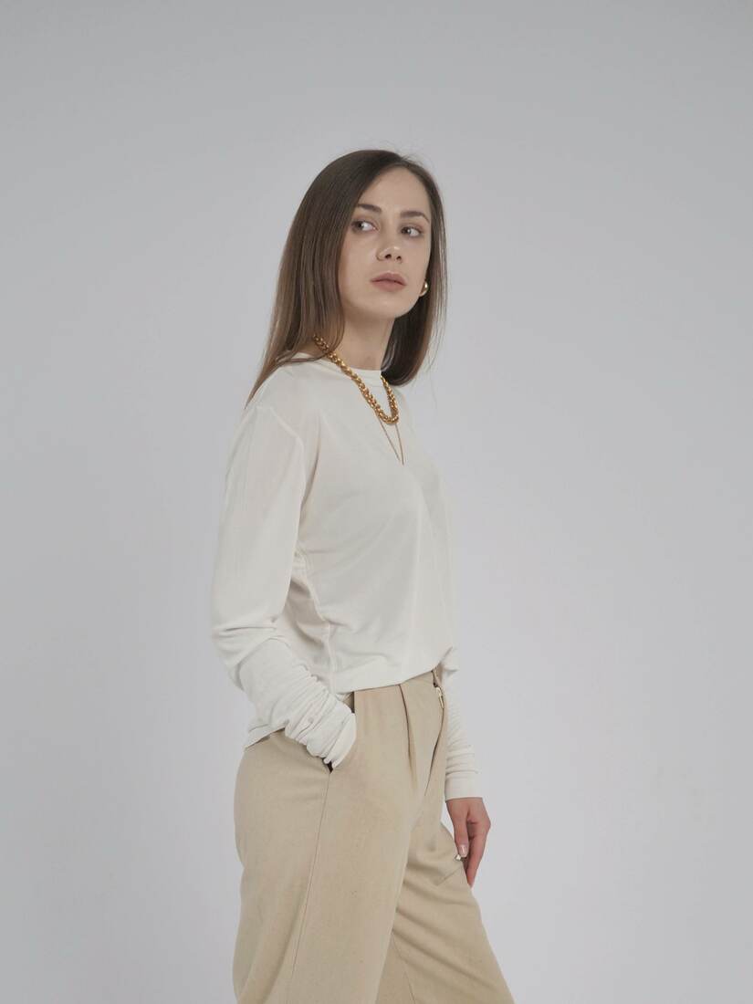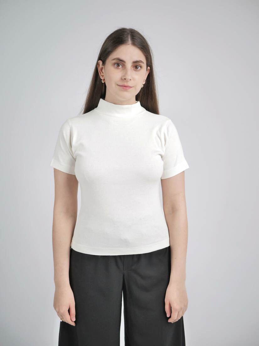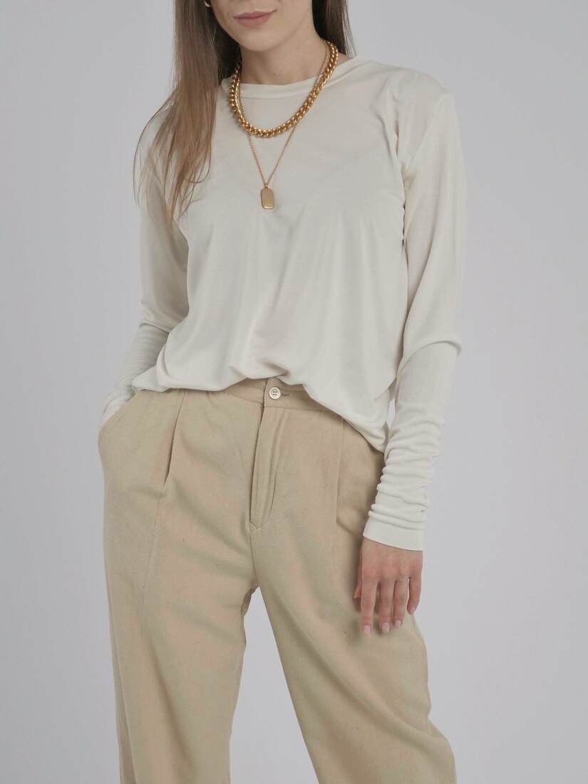 Modelka ma 165 cm wzrostu i nosi rozmiar XS-S.Szerokość w klatce 44,5 cm