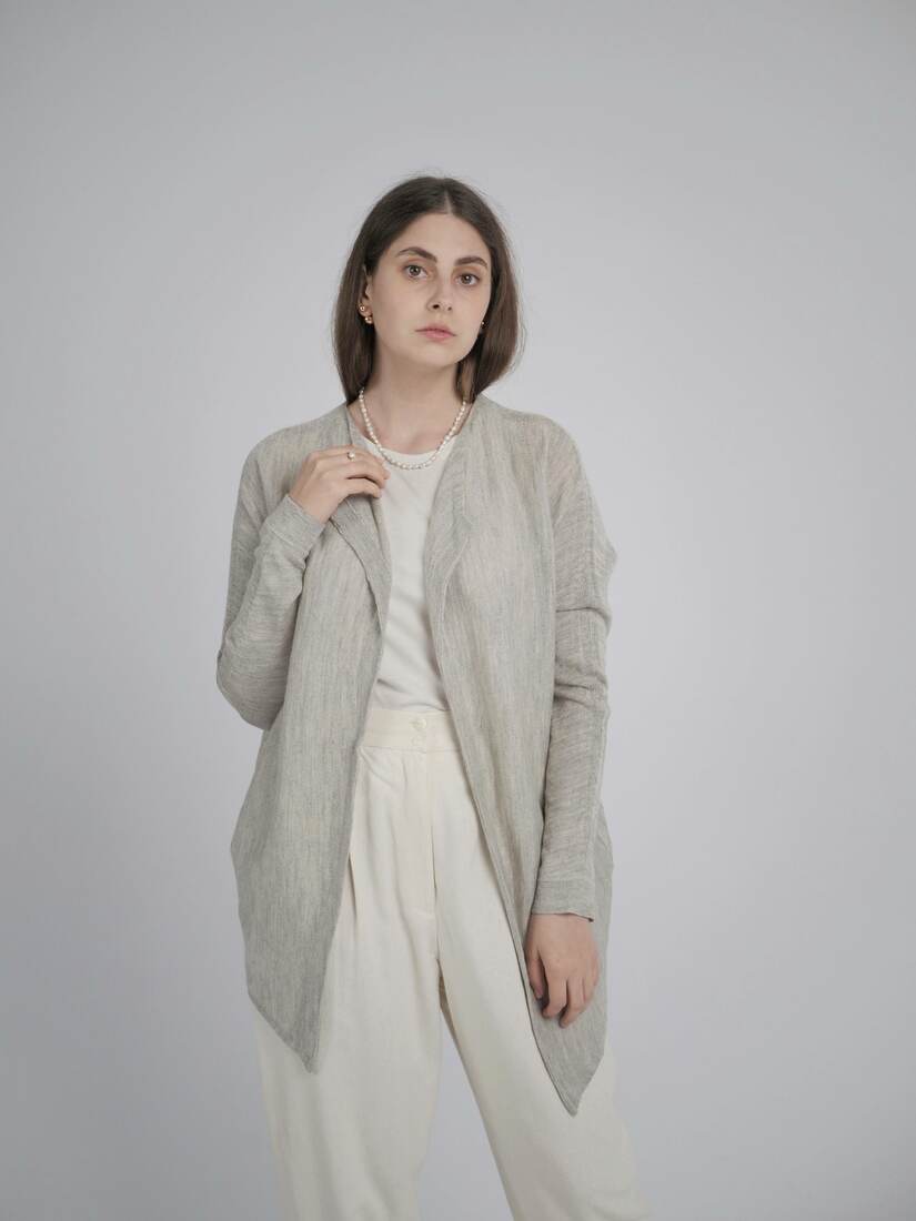 170,00 zł153,00 złSweter narzutka norweskiej marki Alpaca Society. Wyprodukowany w Peru z bardzo miękkiej mieszanki wełny baby alpaka oraz jedwabiu. Rozmiar z metki S, bez wad.