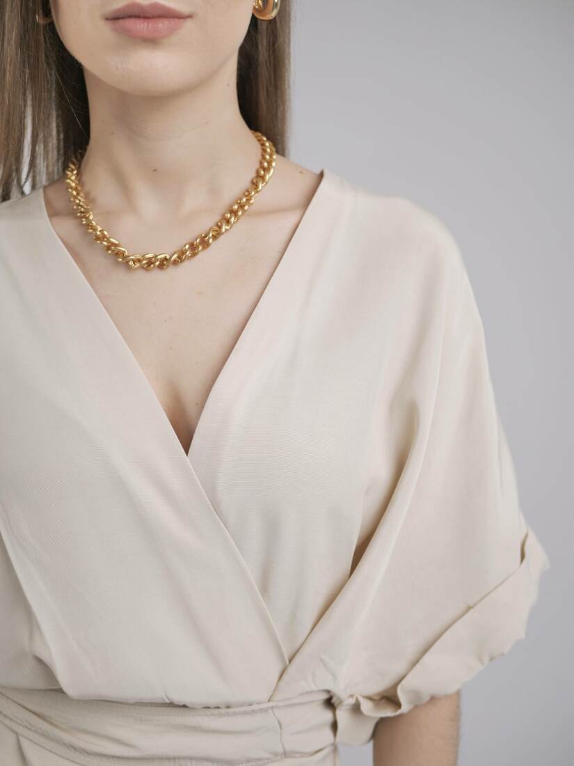Skład: 100% jedwab, ściągacz przy szui i na rękawach 70% jedwab, 30% bawełna.