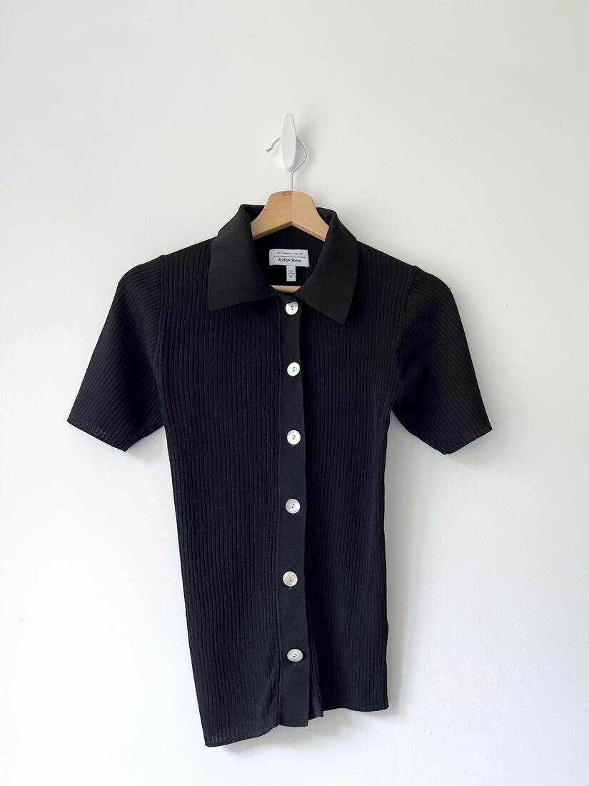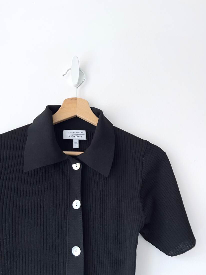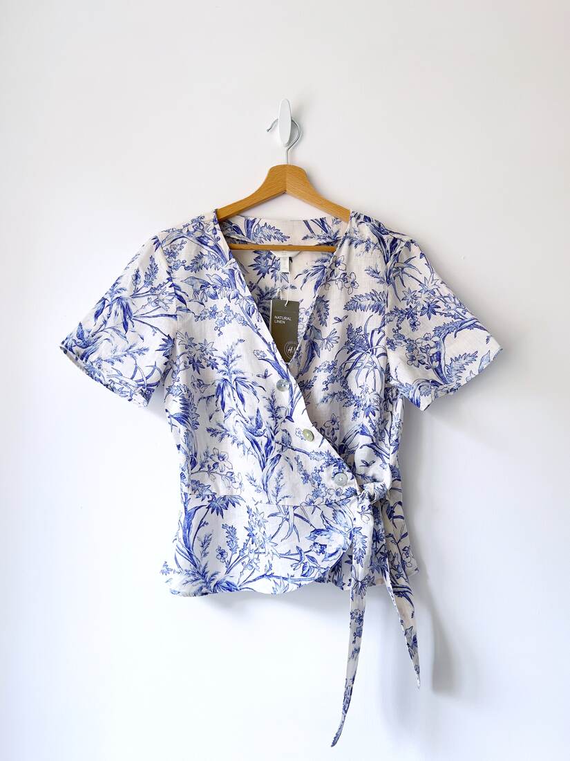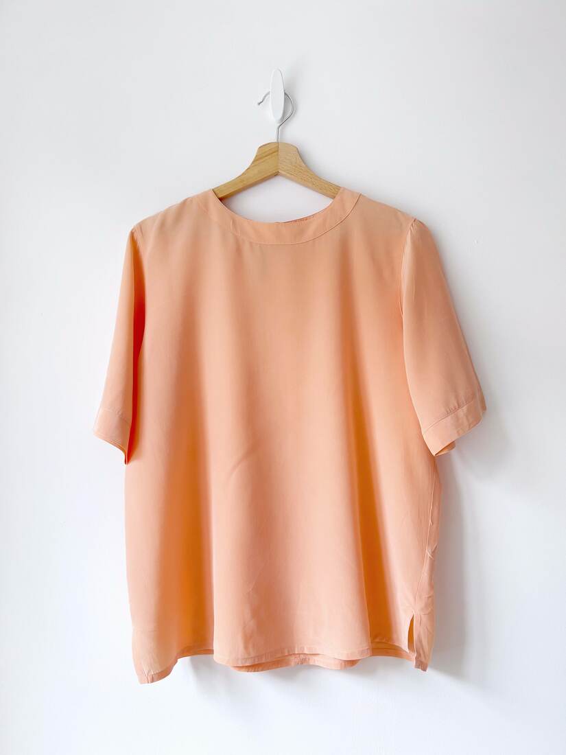 Bluzka nie posiada wewnętrznych metek, oraz ma niewidoczną w noszeniu naklejkę w środku kołnierzyka. Poza tym bez wad.Szerokość w klatce 73 cm