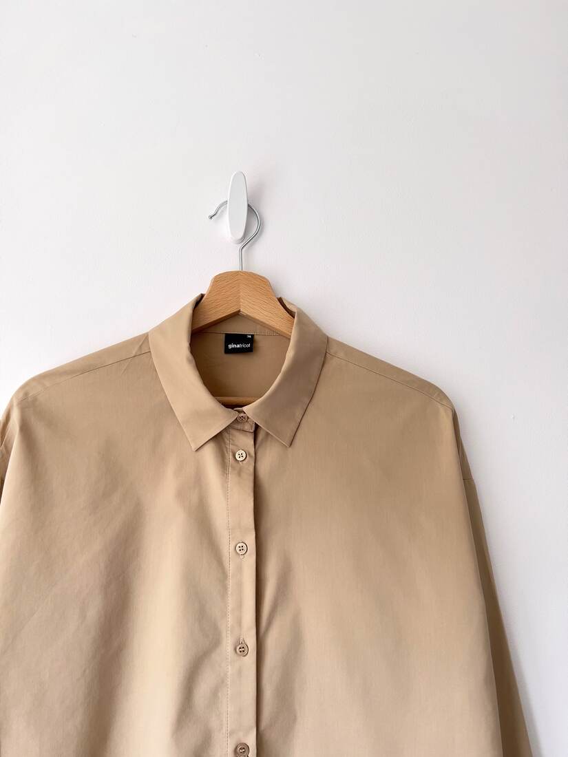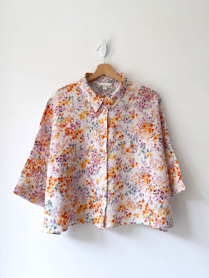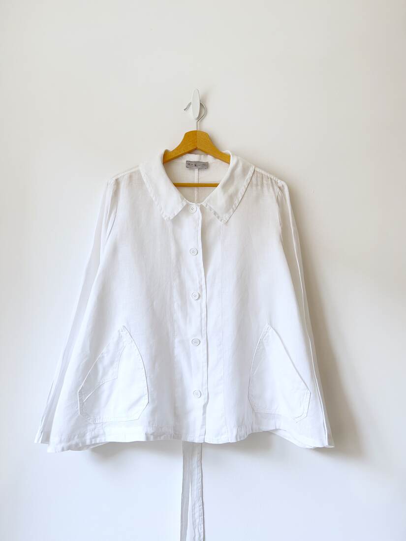 70,00 złLniana koszula o luźnym kroju. Z tyłu pasek, można nosić na luźno, lub zaznaczając linię talii. Może być noszona również jako lekka kurtka. Na jednym rękawie ma malutkie zszycie pokazane na zdjęciu, nie widoczne pod czas noszenia. Poza tym bez wad.