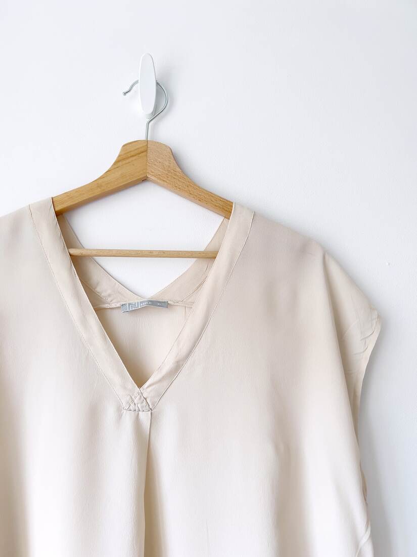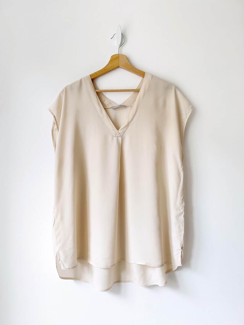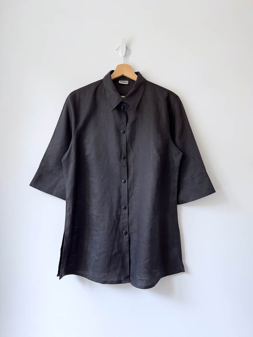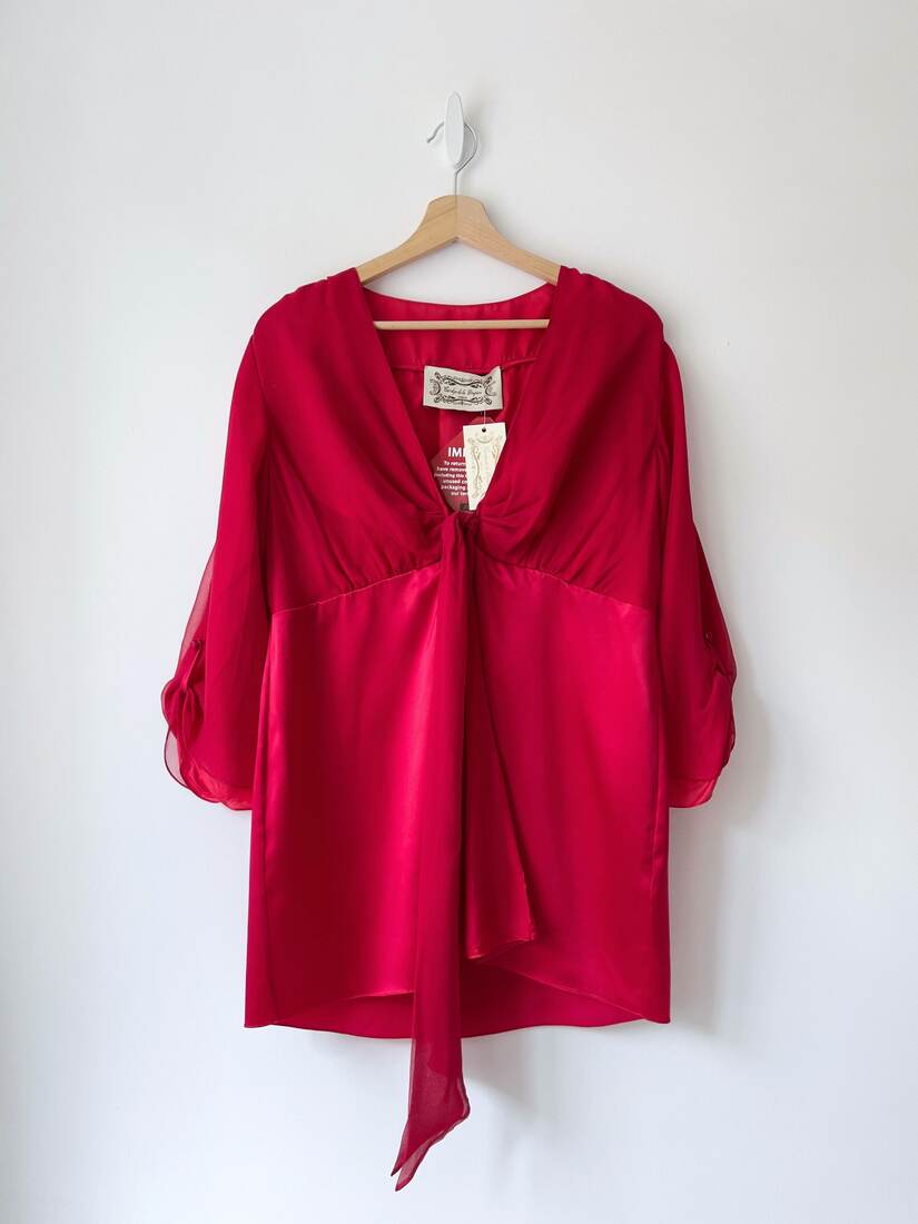 70,00 złLniana koszula o luźnym kroju. Z tyłu pasek, można nosić na luźno, lub zaznaczając linię talii. Może być noszona również jako lekka kurtka. Na jednym rękawie ma malutkie zszycie pokazane na zdjęciu, nie widoczne pod czas noszenia. Poza tym bez wad.