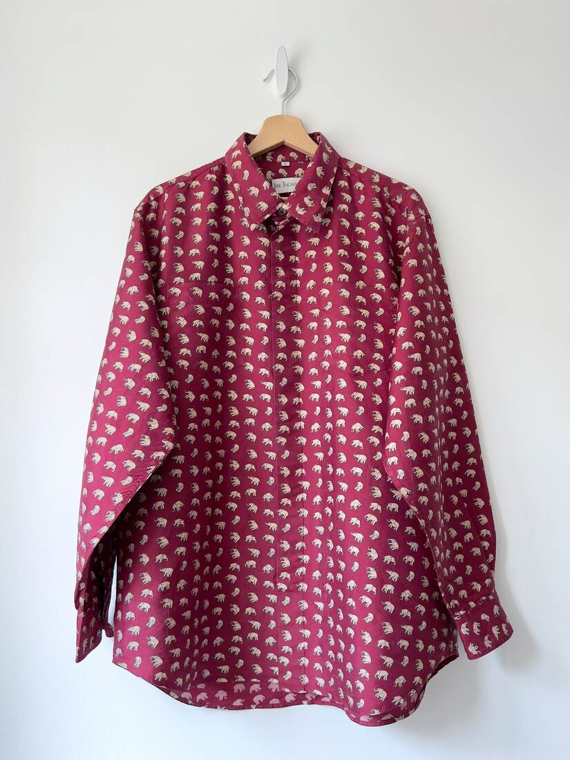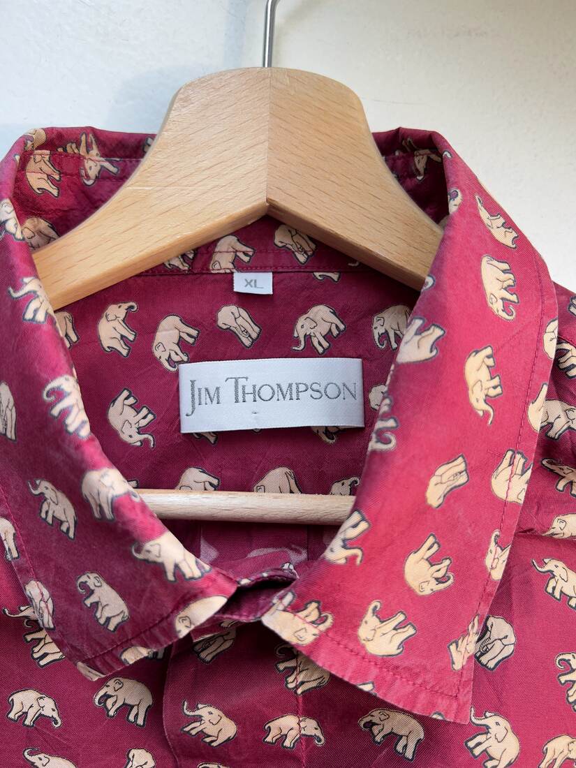 120,00 zł100,00 złKoszula vintage ekskluzywnej marki Jim Thompson. Marka ta specjalizuje się w produkcji tkanin oraz ubrań z tajskiego jedwabiu najwyższej jakości. Słoń jest firmowym symbolem marki, pojawia się na ubraniach oraz akcesoriach.