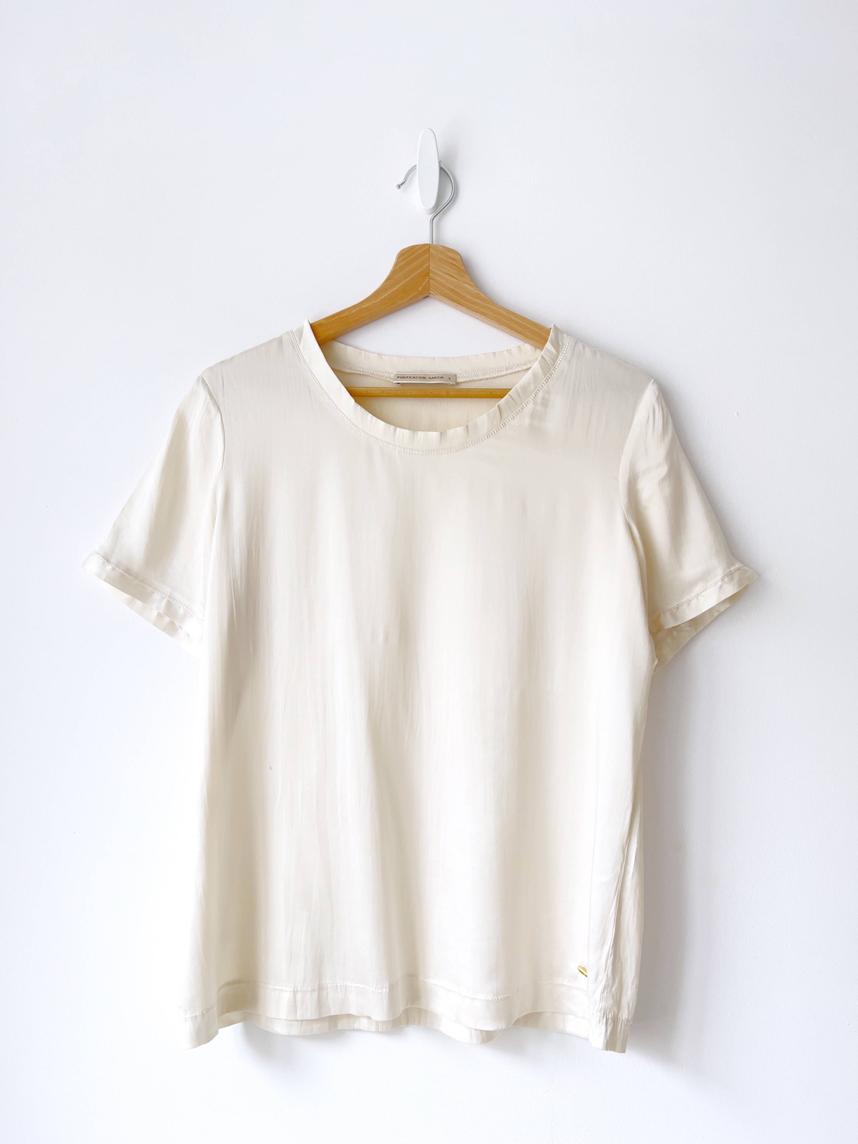 80,00 złBluzka ekskluzywnej marki Purificacion Garcia. Wykonana z miłej w dotyku jedwabnej satyny. Ma malutką plamkę, pokazana na zdjęciu. Nie jest bardzo widoczna w noszeniu. Poza tym bez wad. Rozmiar z metki L.