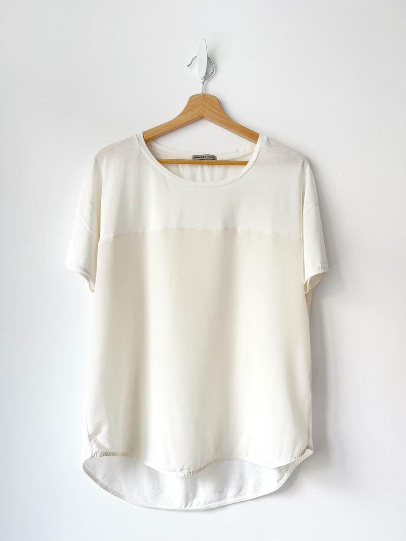130,00 zł80,00 złT-shirt o luźnym kroju, ekskluzywna marka Drykorn. Wykonany z miłej w dotyku tkaniny ze wstawką z jedwabiu. Rozmiar z metki XS, obszerny fason, więc polecam jako one size. Bez wad.