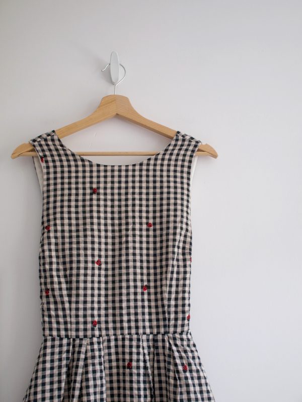Sukienka brytyjskiej projektantki Cath Kidston. Z tyłu zapinana na ukryty zamek, posiada szarfę, którą można wiązać na różne sposoby. Nowa, z metką. Cena z metki 108 euro.