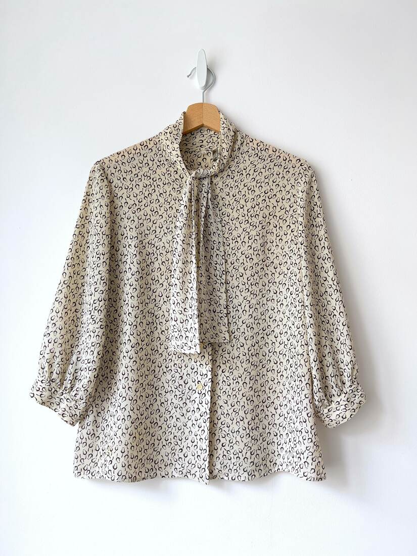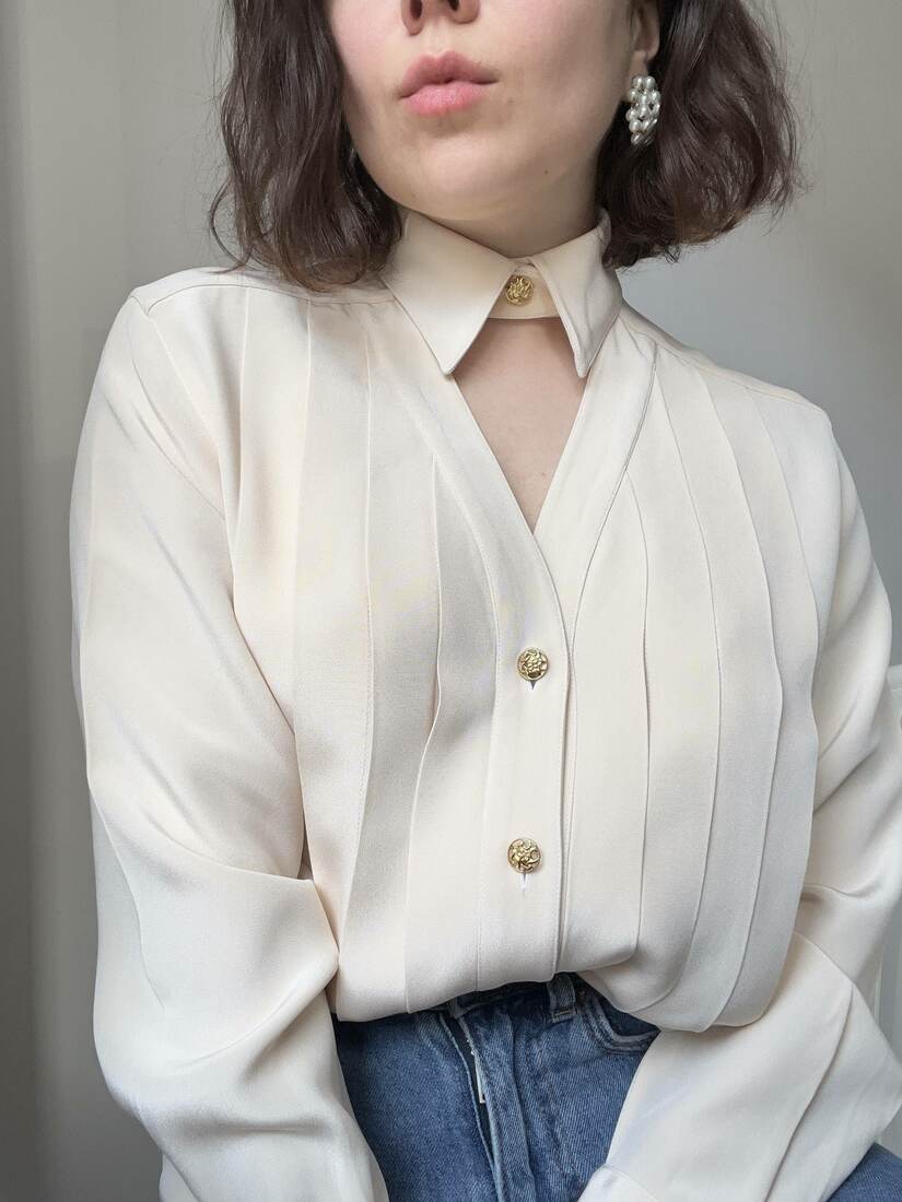 140,00 złUnikatowa bluzka vintage. Zapinana na ozdobne guziki. Brak metek, możliwie jest szyta na zamówienie. Polecam na XS-S-M, modelka na zdjęciu nosi rozmiar XS-S. Bez wad.