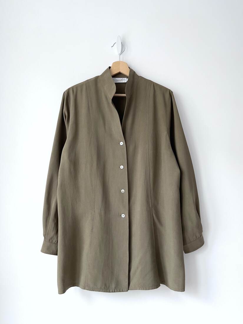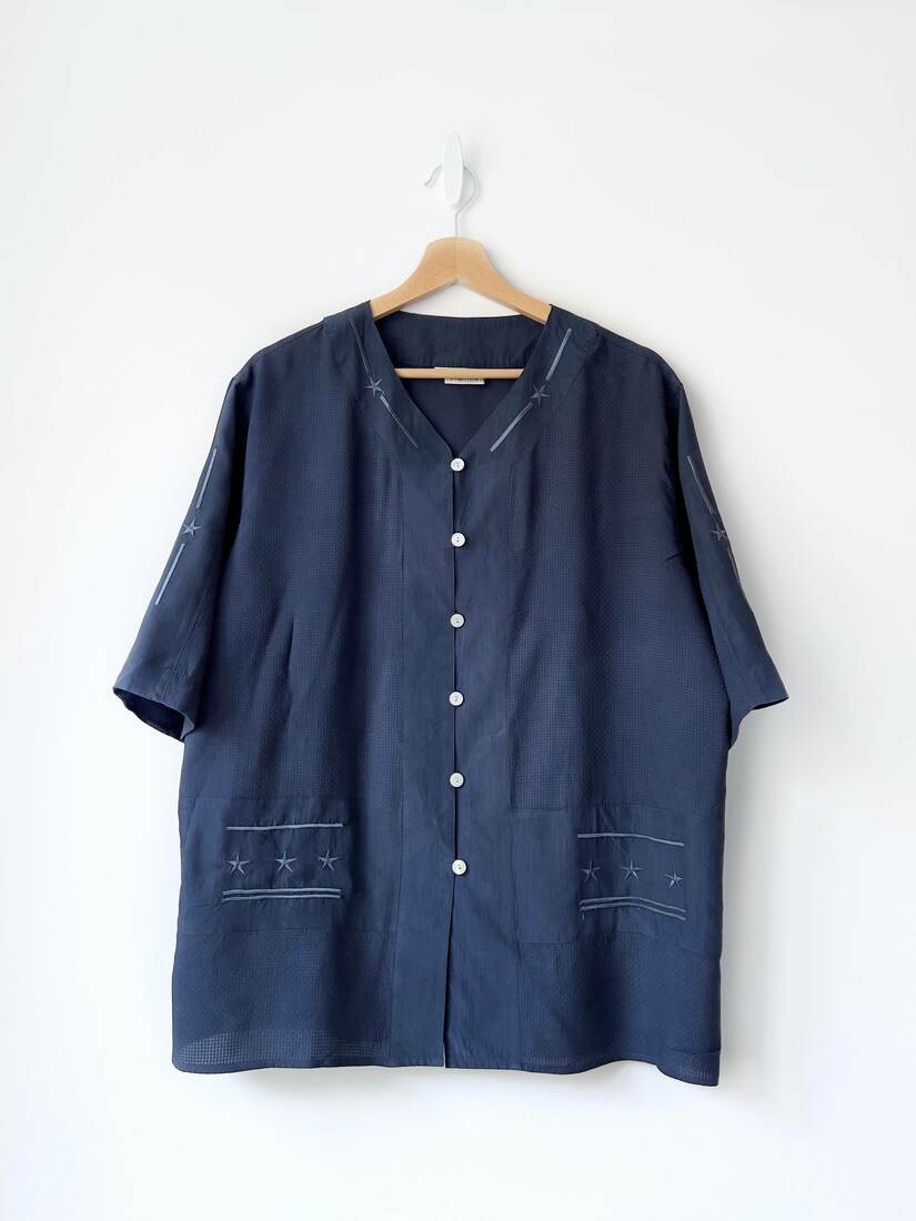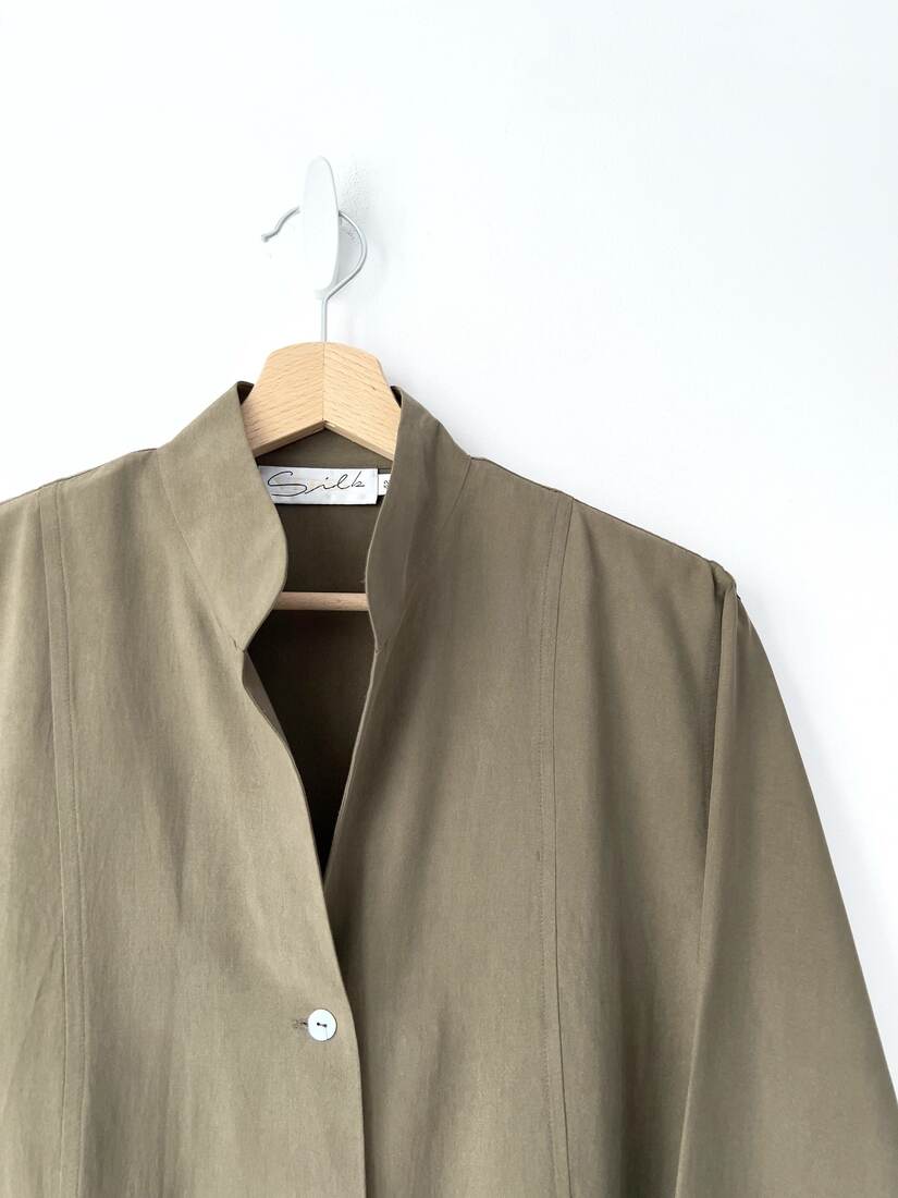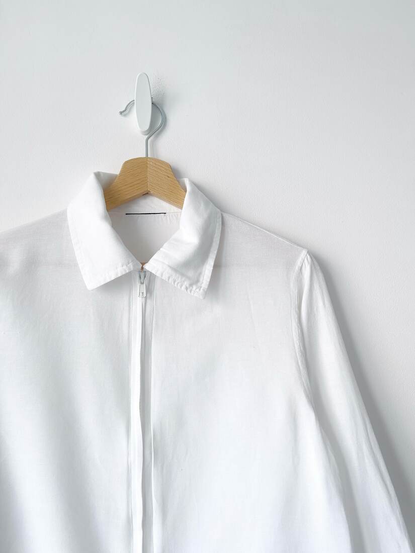 80,00 złVintage koszula z zapięciem na suwak. Wykonana z mieszanki wiskozy oraz bawełny z dodatkiem lnu. Może być noszona również jako lekka kurtka. Brak metki z rozmiarem, proszę sugerować się wymiarami. Bez wad.