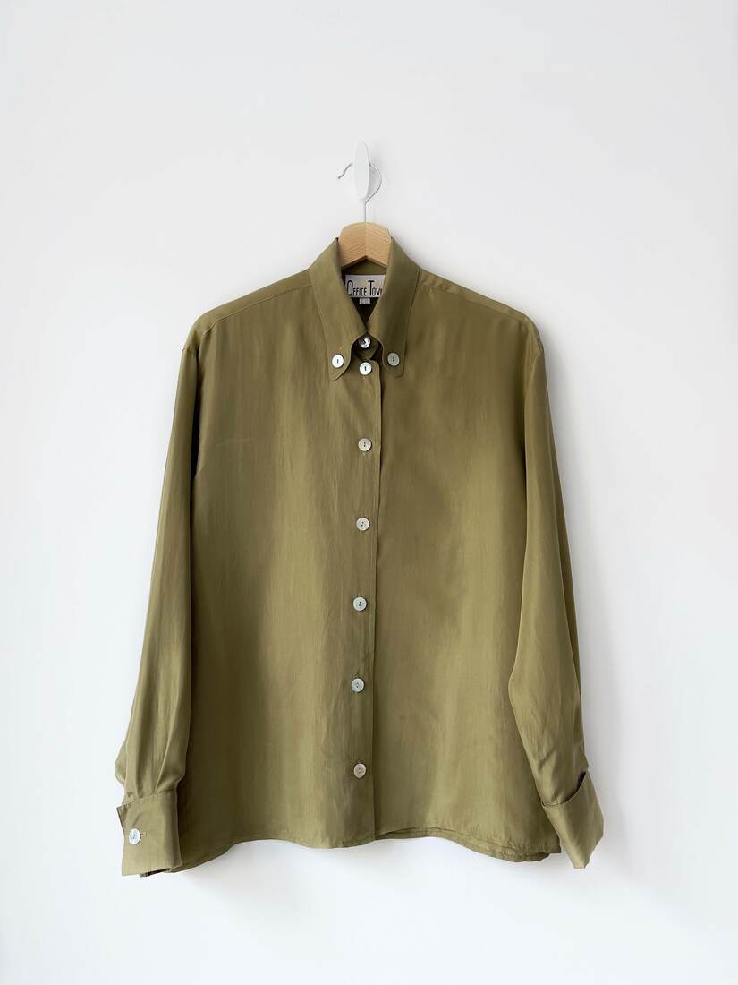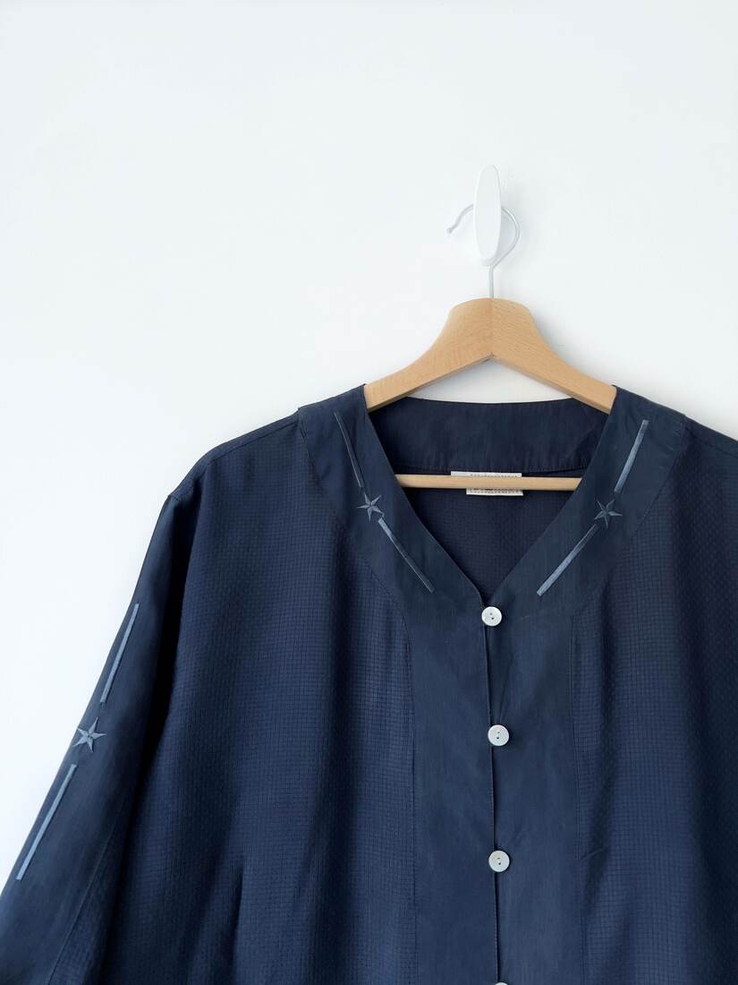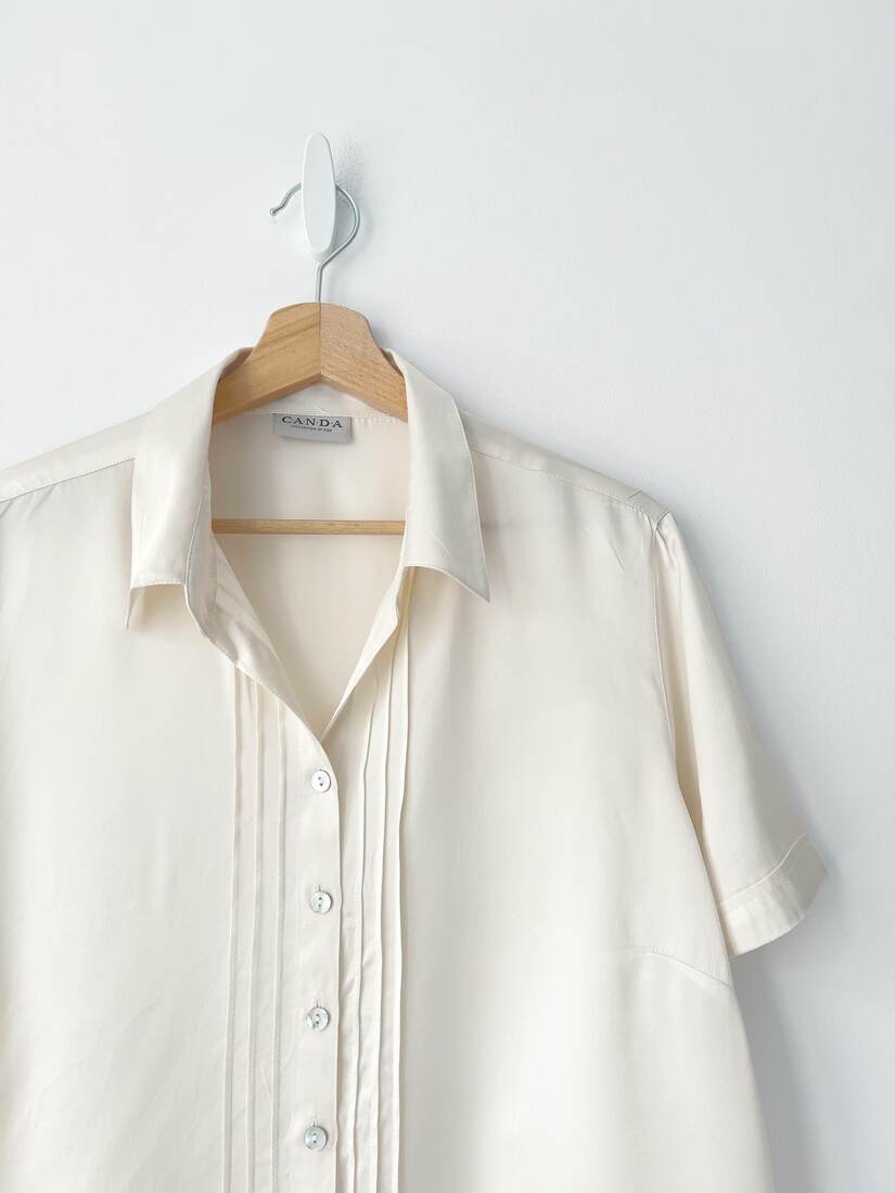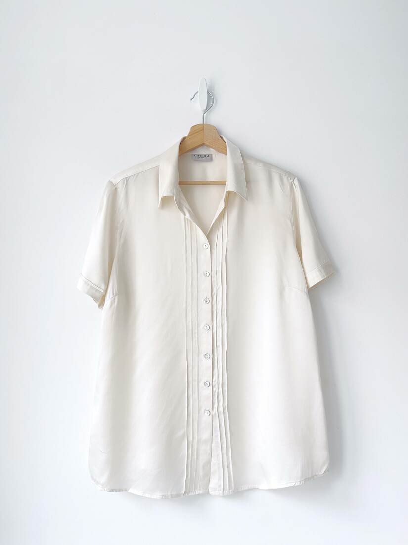 80,00 złVintage koszula z zapięciem na suwak. Wykonana z mieszanki wiskozy oraz bawełny z dodatkiem lnu. Może być noszona również jako lekka kurtka. Brak metki z rozmiarem, proszę sugerować się wymiarami. Bez wad.