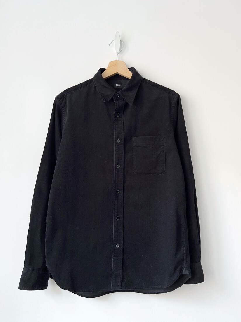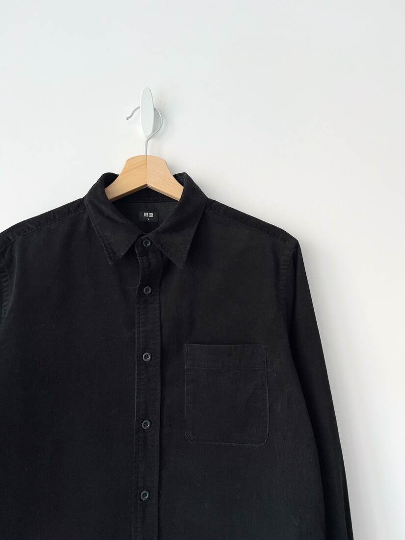 Sztruksowa koszula marki Uniqlo. Rozmiar z metki S, prawdopodobnie męski. Brak metki ze składem, zgodnie ze stroną producenta jest to 100% bawełna. Bardzo dobry stan.