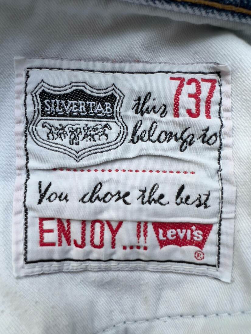120,00 złUnikatowe jeansy marki Levi’s, model vintage z lat 90-ch. Fason z wysokim stanem oraz zwężaną nogawką, zapinane na suwak, nie są elastyczne. Jeansy są w bardzo dobrym stanie, jedynie skórzana naszywka jest zdeformowana, nie będzie to widoczne pod paskiem. Metka z rozmiarem jest wycięta, na oko rozmiar M-L, proszę sugerować się wymiarami.