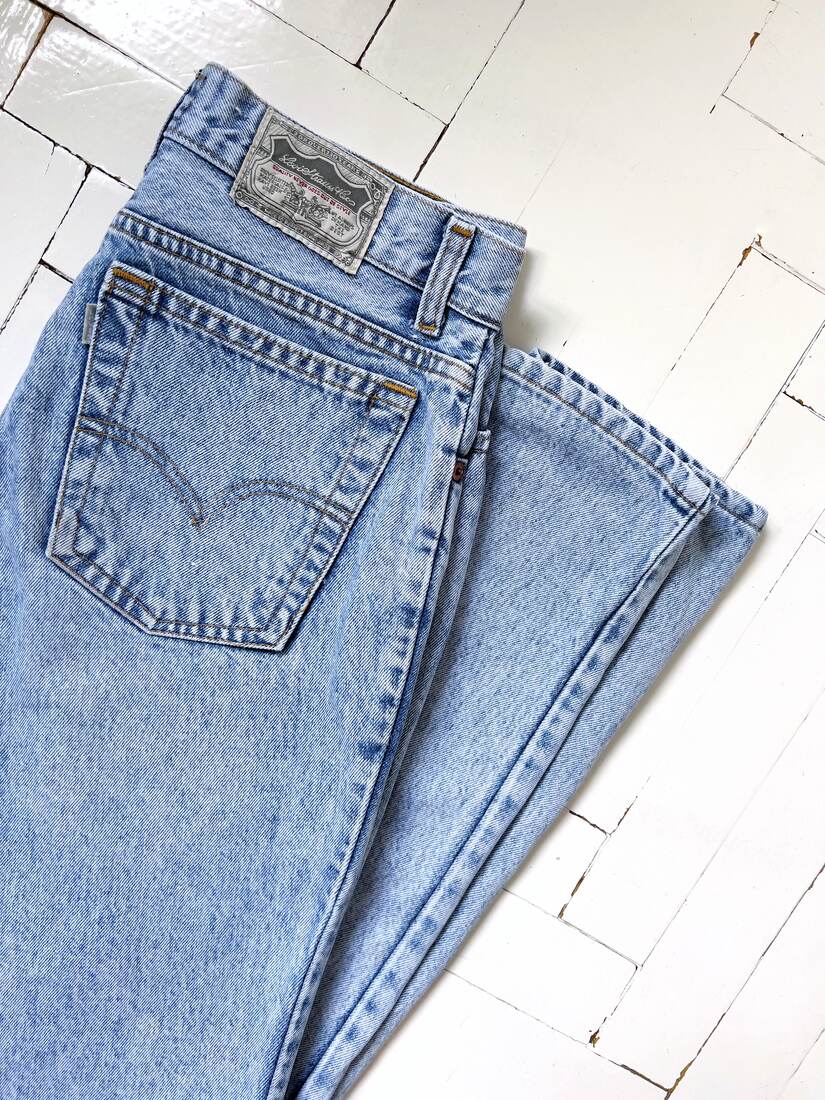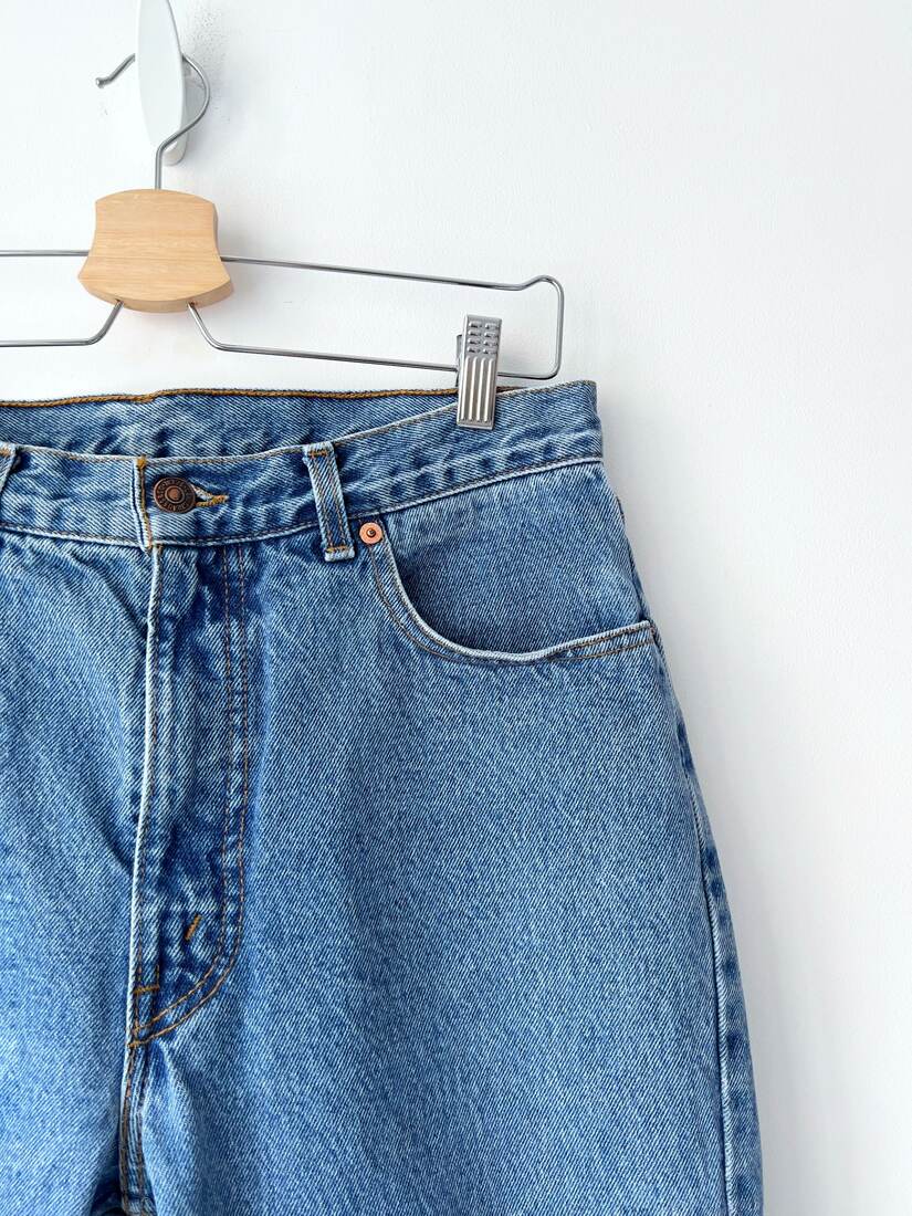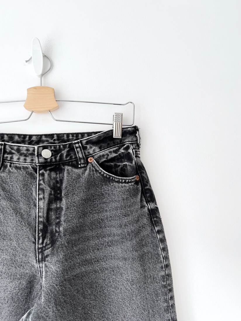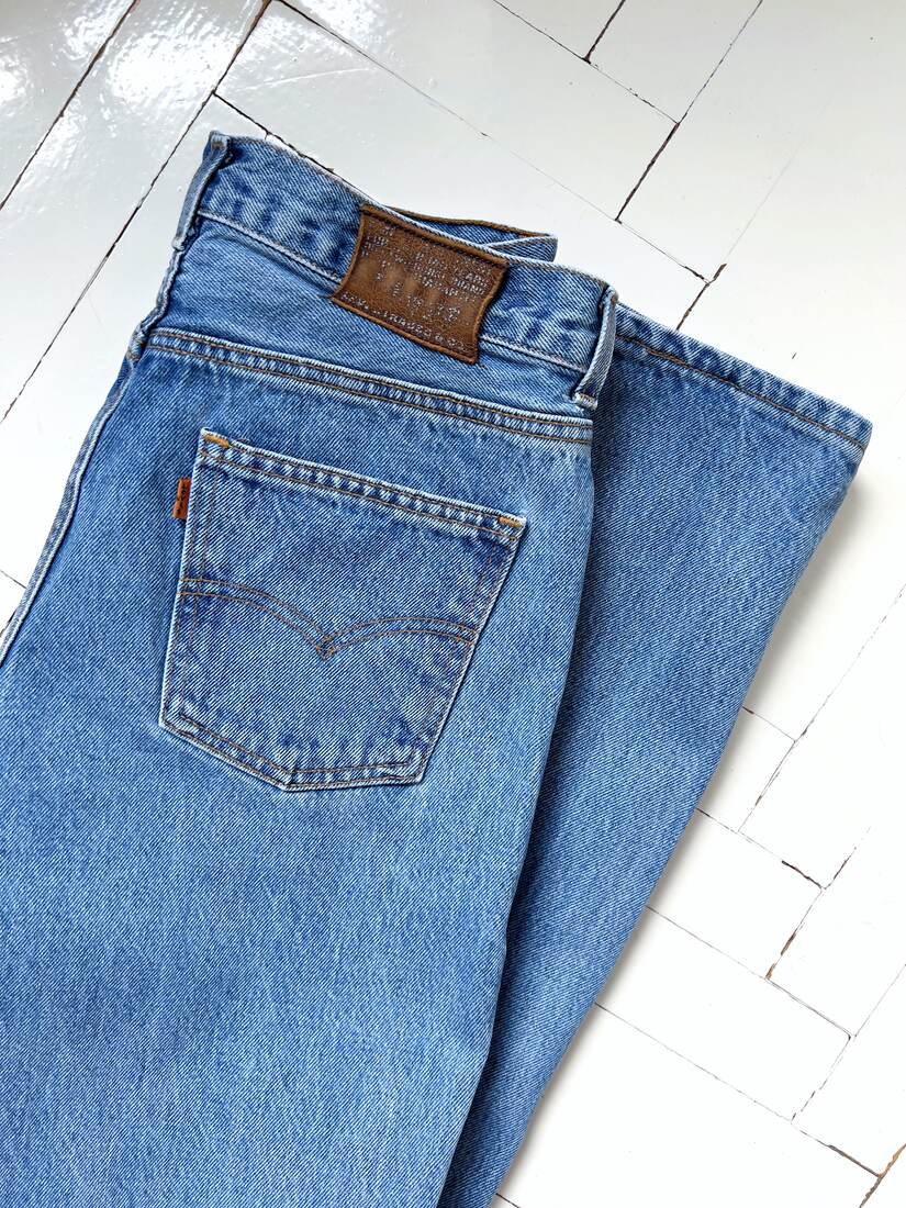 140,00 złUnikatowe jeansy marki Levi’s, model vintage sprzed lat 90-ch. Fason z wysokim stanem oraz zwężaną nogawką, zapinane na suwak, nie są elastyczne. Metka z rozmiarem nie jest czytelna, na oko r.M, proszę sugerować się wymiarami. Bardzo dobry stan.