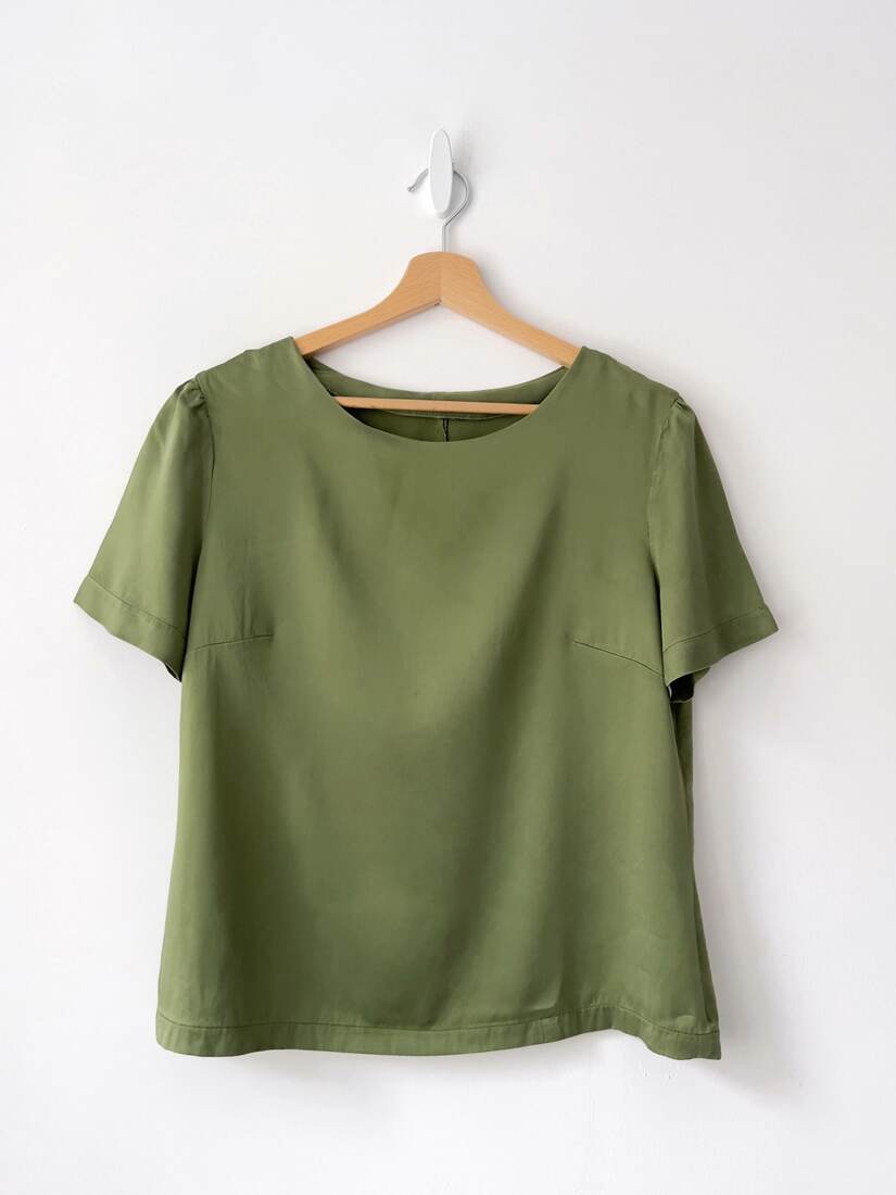 Ręcznie szyta jedwabna bluzka. Brak metek z rozmiarem, proszę sugerować się wymiarami. Bardzo dobry stan.