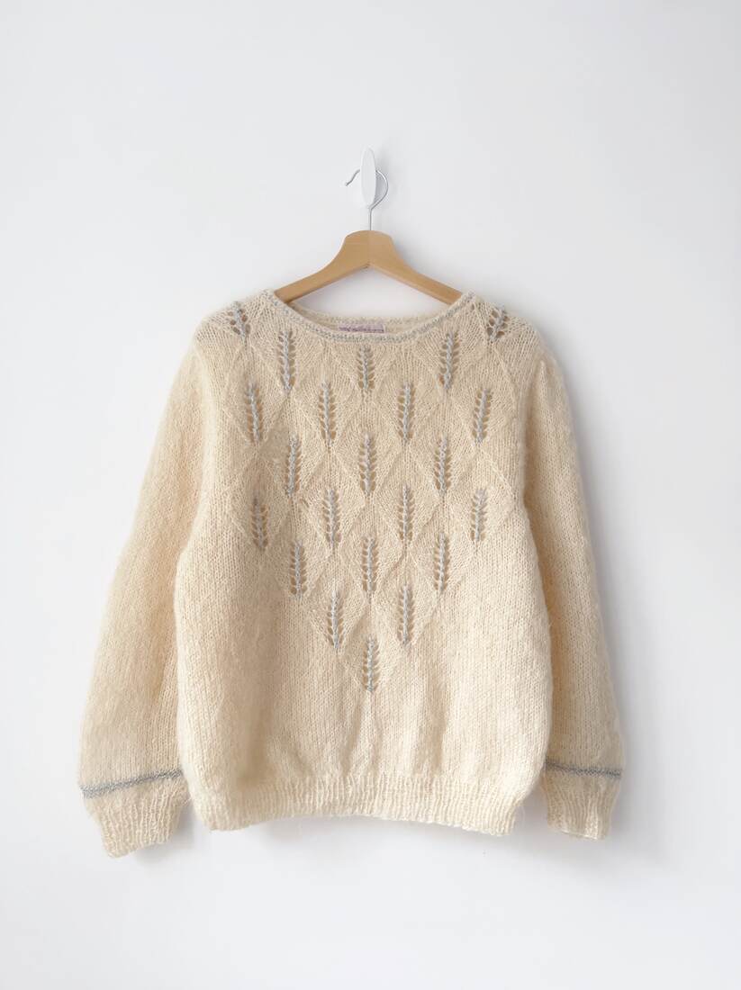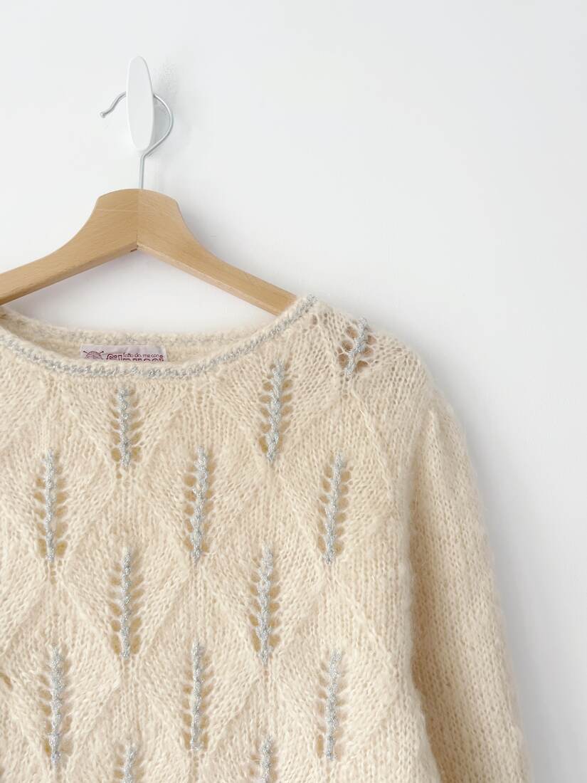 Unikatowy sweter vintage, wykonany z włóczki ekskluzywnej włoskiej marki Filpucci. Brak metek, jest to moher. Rozmiar uniwersalny, bez wad.