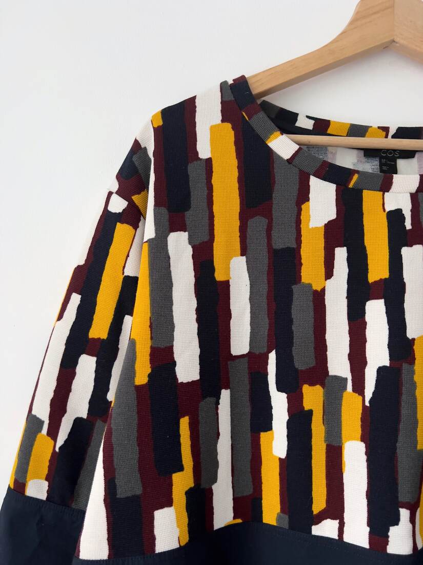 Bluzka z łączonych materiałów. Skandynawka marka COS. Rozmiar z metki L, idealny stan.