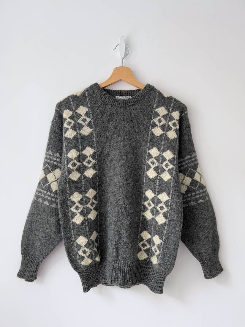 Sweter vintage, w 100% wykonany z wełny szetlandzkiej. Rozmiar z metki L, bardzo dobry stan.