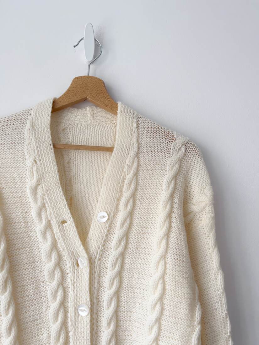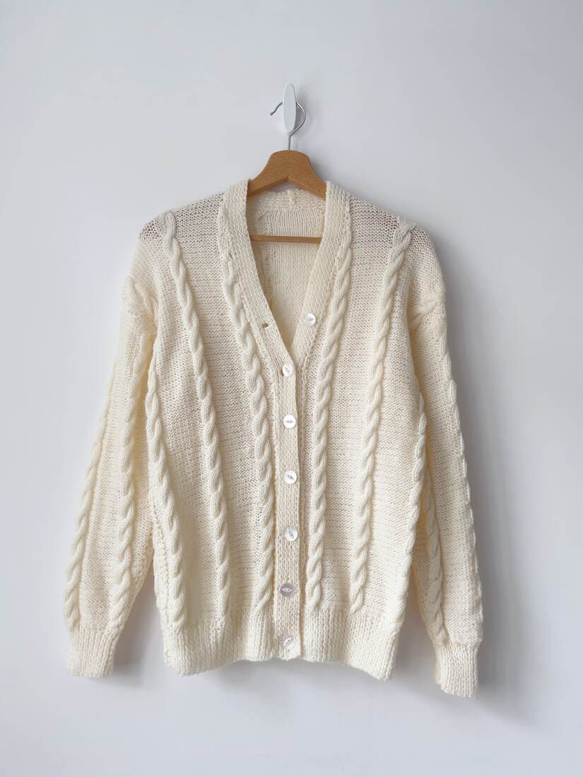 Kardigan Hand Made. Brak metek ze składem i rozmiarem, proszę sugerować się wymiarami. Bez wad.