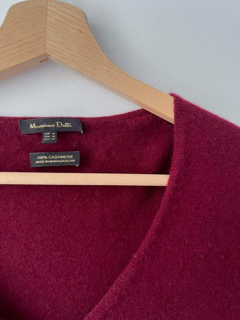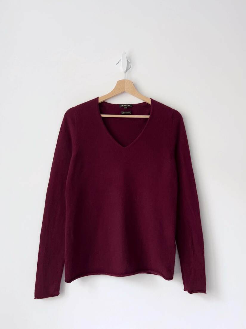 Bordowy sweter marki Massimo Dutti, w 100% wykonany z kaszmiru. Prosty fason, najlepiej będzie pasować na S-M. Bez wad.