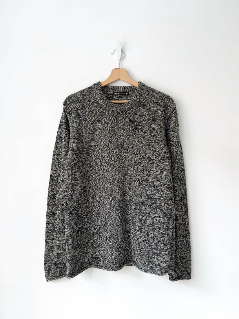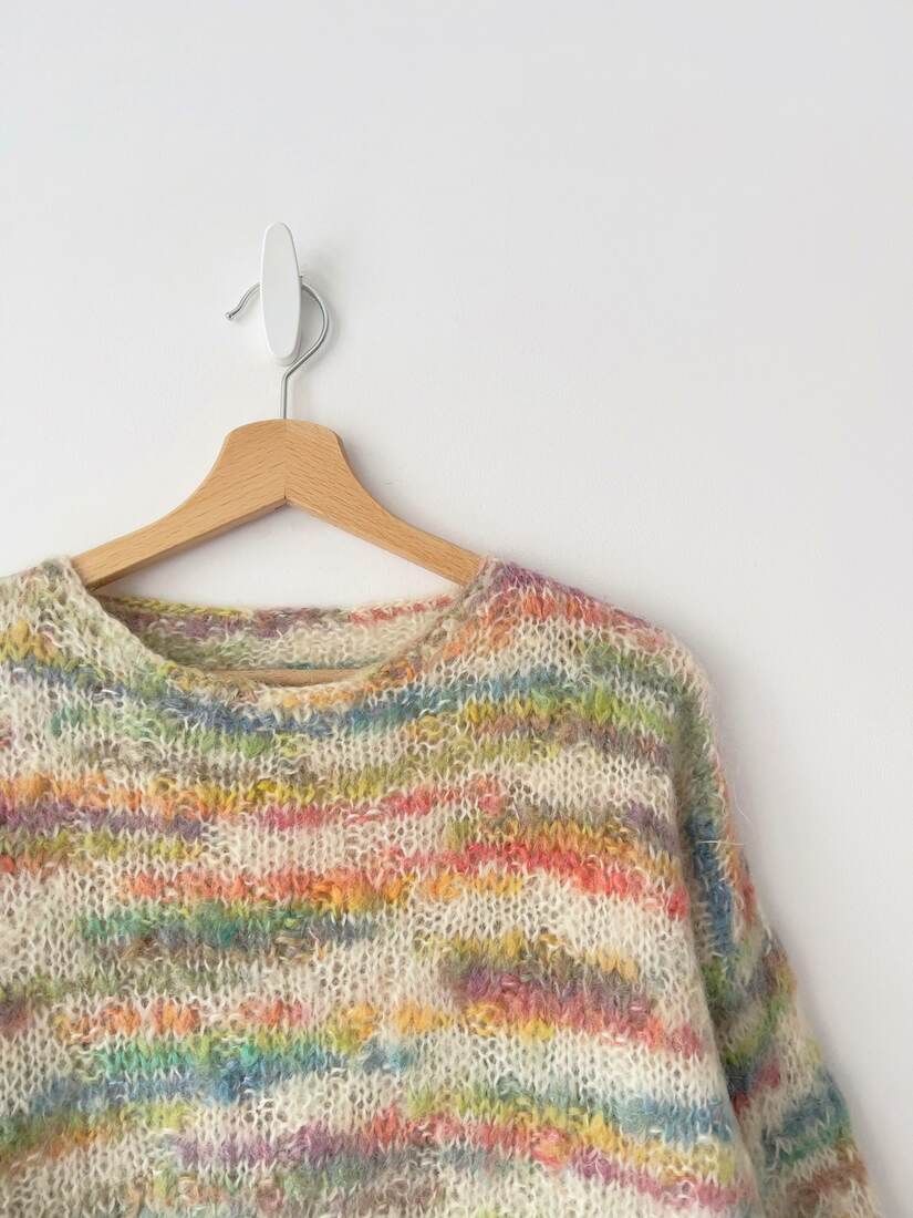 110,00 złUnikatowy puszysty sweter hand made. Brak metki ze składem, na pewno ma w składzie moher. Rozmiar dość uniwersalny, zależnie od preferowanego dopasowania polecam na S-M-L. Bez wad.