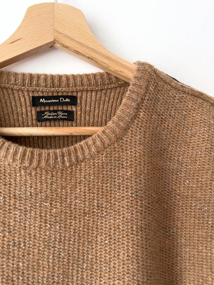 100,00 zł80,00 złGruby sweter marki Massimo Dutti. Wykonany z wełny z wiskozy oraz poliamidu. Na ramionach ma małe naszywki. Polecam na r. L-XL. Bardzo dobry stan.