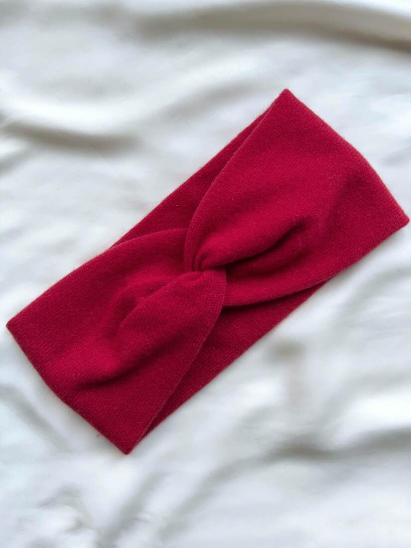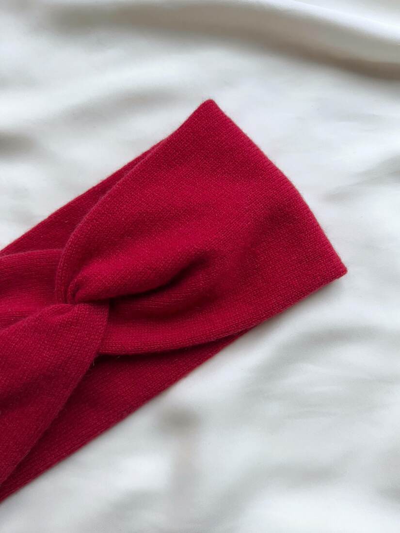 Ciepła opaska na głowę w kolorze czerwonym. W 100% szyta z kaszmiru z odzysku. Rozmiar uniwersalny. Skład: 100% kaszmir