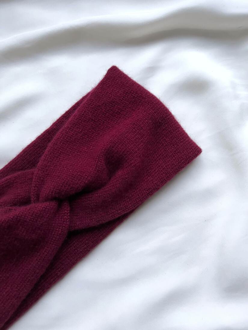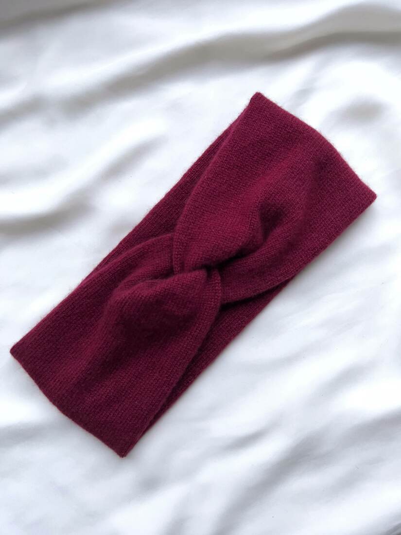 Ciepła opaska na głowę w kolorze bordowym. W 100% szyta z kaszmiru z odzysku. Rozmiar uniwersalny. Skład: 100% kaszmir