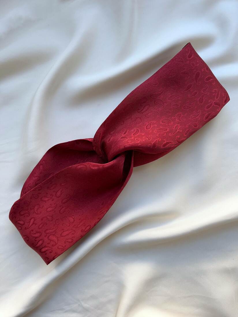 Opaska na włosy, w 100% wykonana z jedwabiu. Materiał pochodzi z odzysku. Srednica ok 21 cm