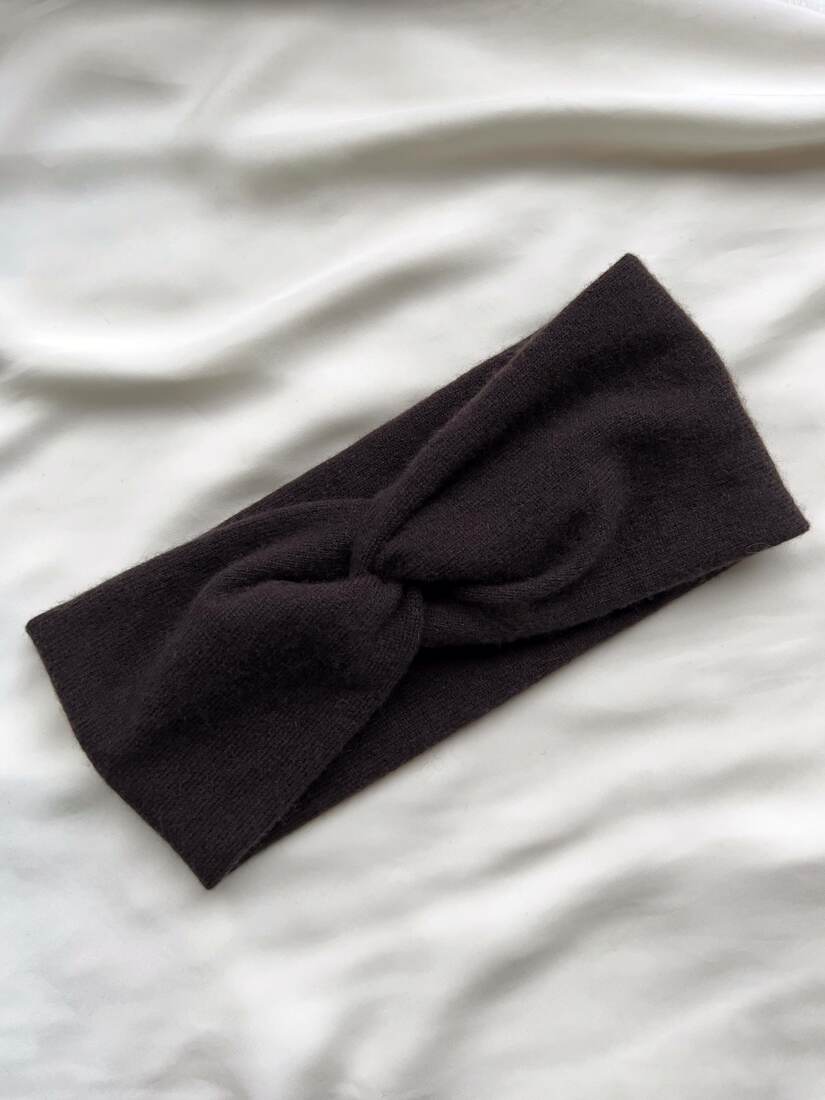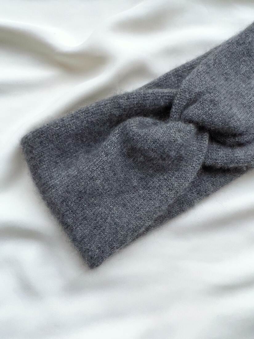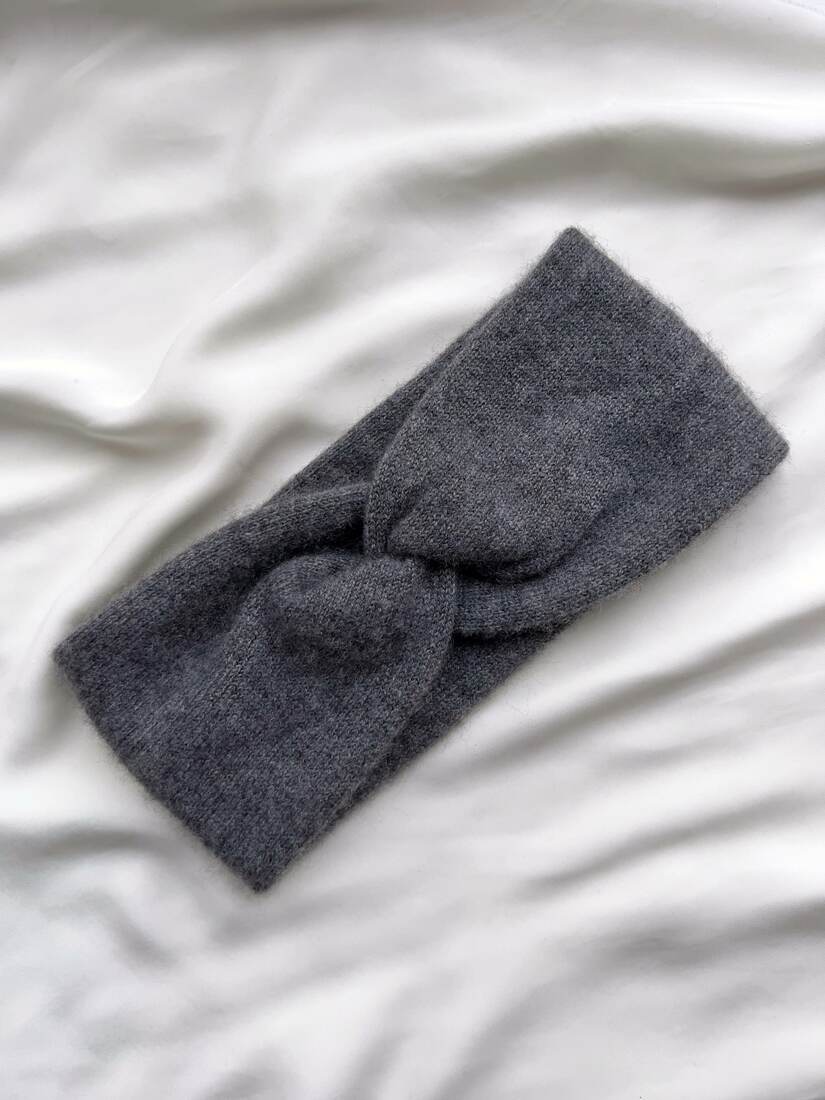 Ciepła opaska na głowę w kolorze grafitowym. W 100% szyta z kaszmiru z odzysku. Rozmiar uniwersalny. Skład: 100% kaszmir