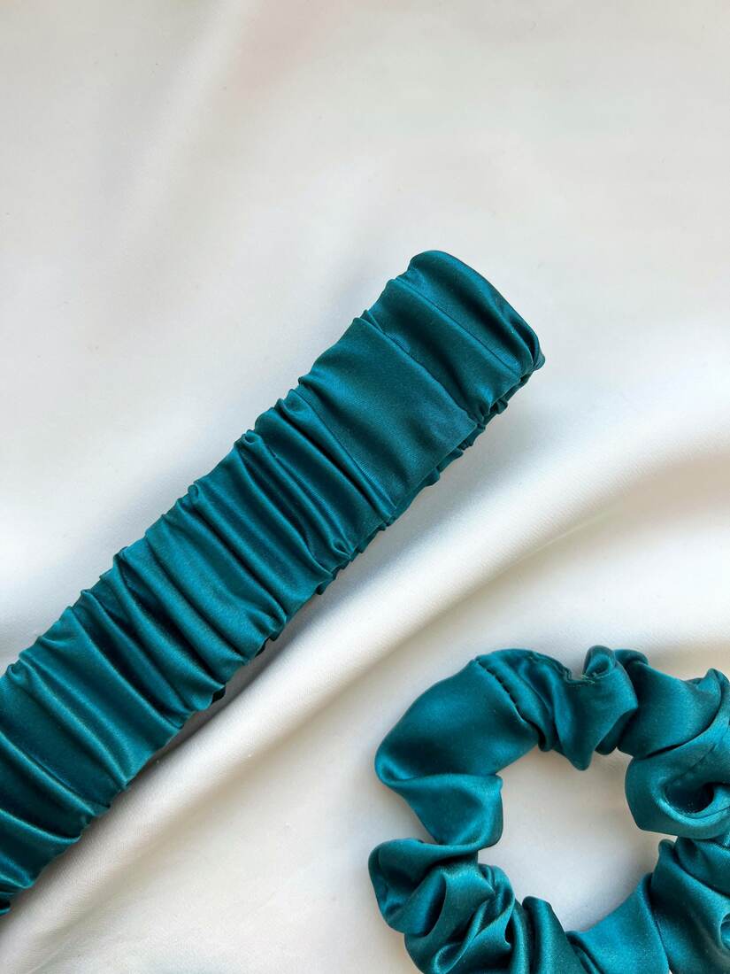 Opaska na włosy, w 100% wykonana z jedwabiu. Materiał pochodzi z odzysku. Srednica ok 21 cm