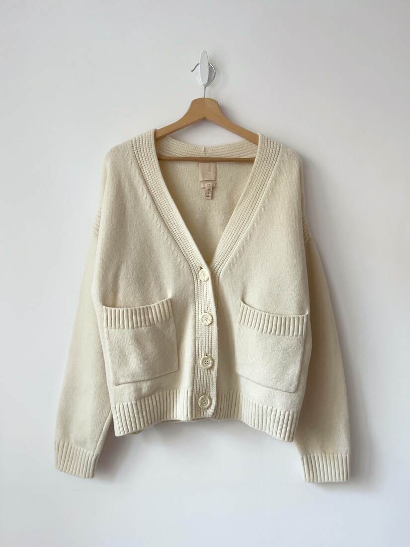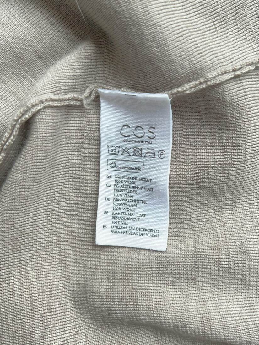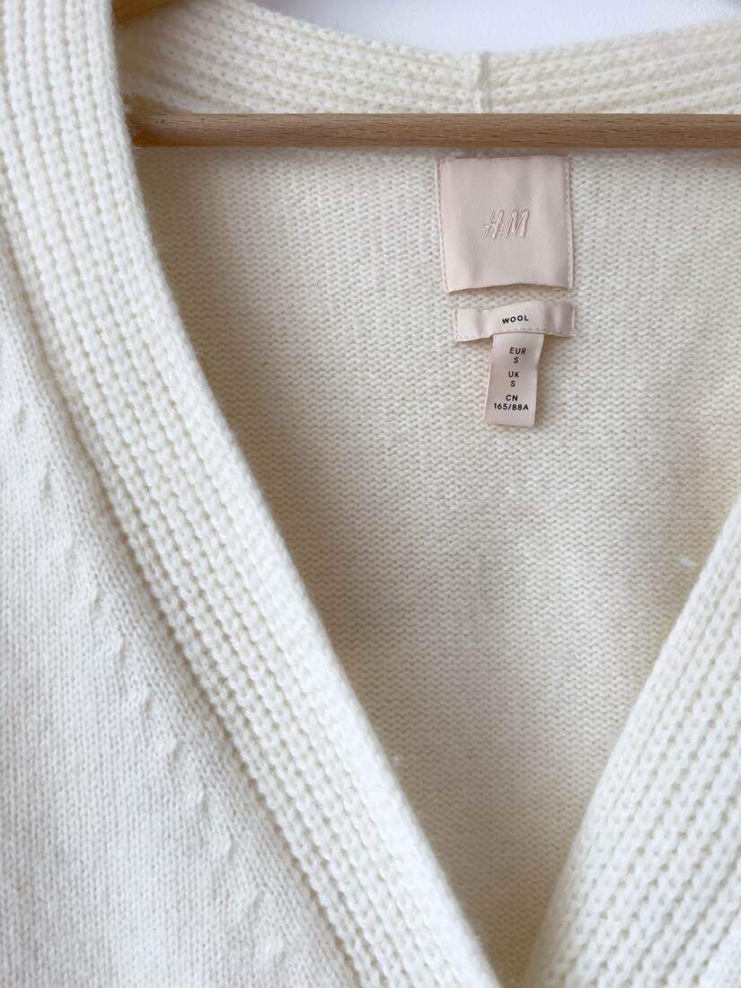 120,00 złGruby sweter marki H&M, linia Premium. Wykonany z wełny z dodatkiem kaszmiru. Rozmiar z metki 36, fason jest bardzo oversizowy, więc polecam również na M i L. Bardzo dobry stan.